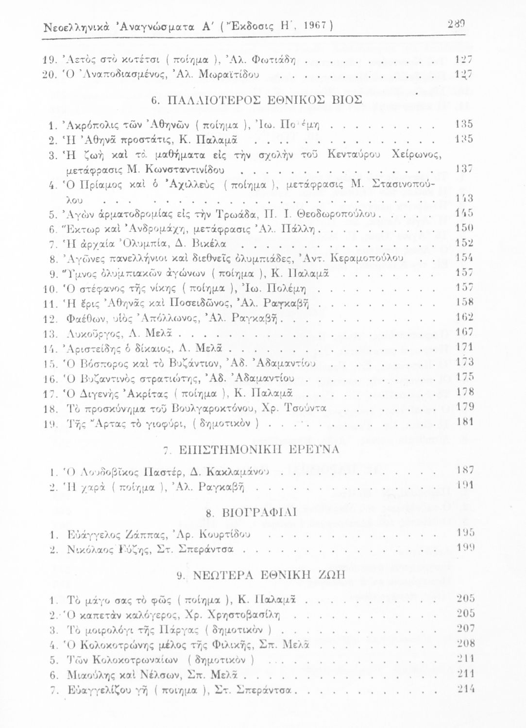 Σχολικό εγχειρίδιο Νέων Ελληνικών Α' Γυμνασίου που περιέχει ποιήματα και πεζά Ελλήνων συγγραφέων εμπνευσμένα από την αρχαία ελληνική ιστορία και μυθολογία, τη βυζαντινή και σύγχρονη ελληνική ιστορία και την καθημερινή ζωή. Περιέχει παράρτημα με βιογραφίες των συγγραφέων και λεξιλόγιο.