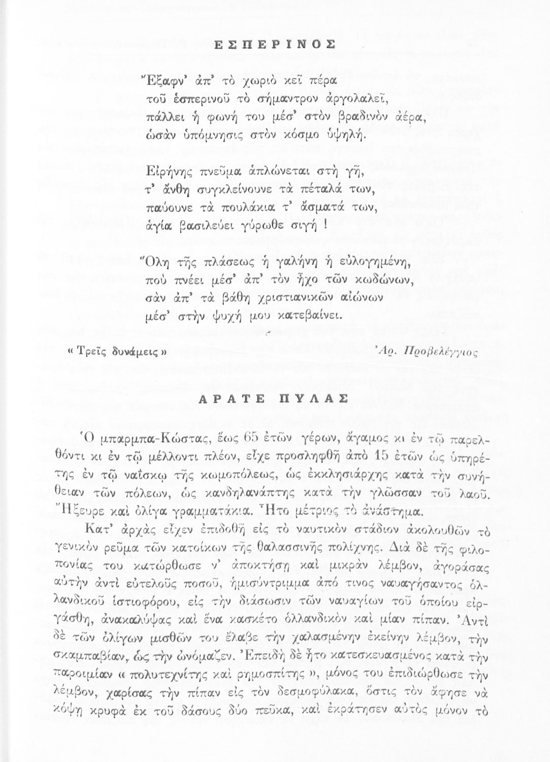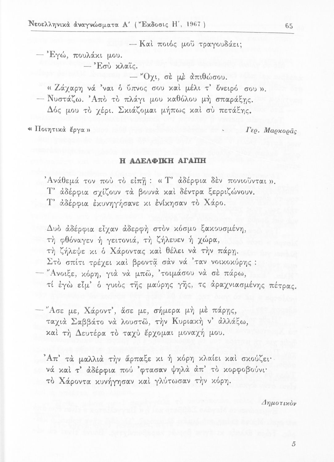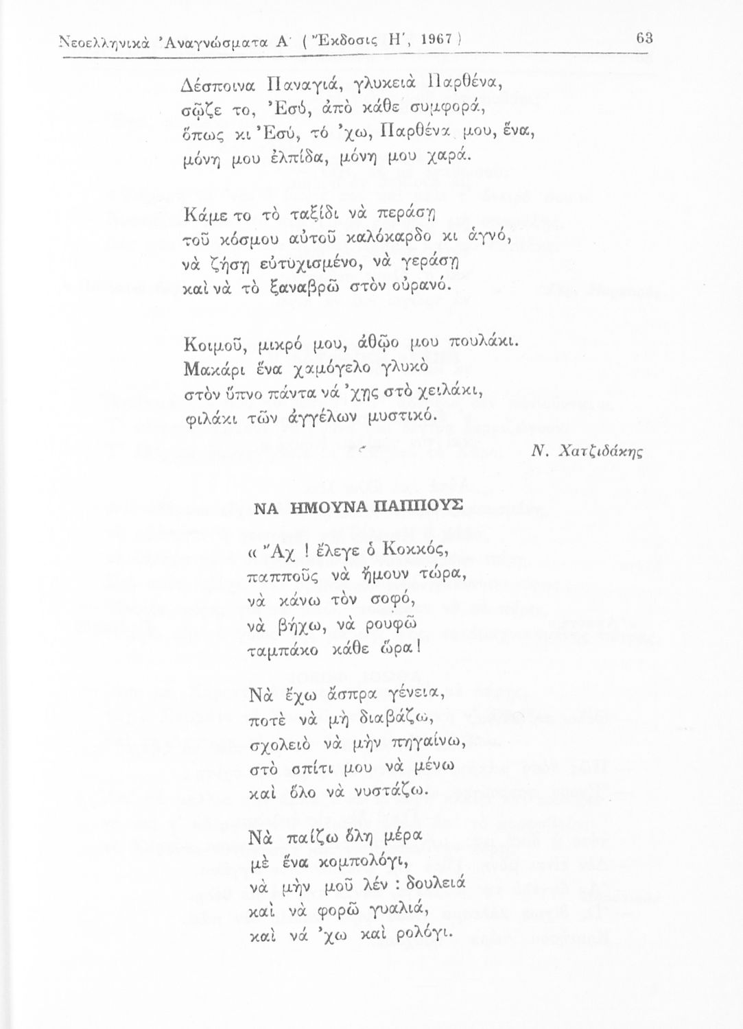 Σχολικό εγχειρίδιο Νέων Ελληνικών Α' Γυμνασίου που περιέχει ποιήματα και πεζά Ελλήνων συγγραφέων εμπνευσμένα από την αρχαία ελληνική ιστορία και μυθολογία, τη βυζαντινή και σύγχρονη ελληνική ιστορία και την καθημερινή ζωή. Περιέχει παράρτημα με βιογραφίες των συγγραφέων και λεξιλόγιο.