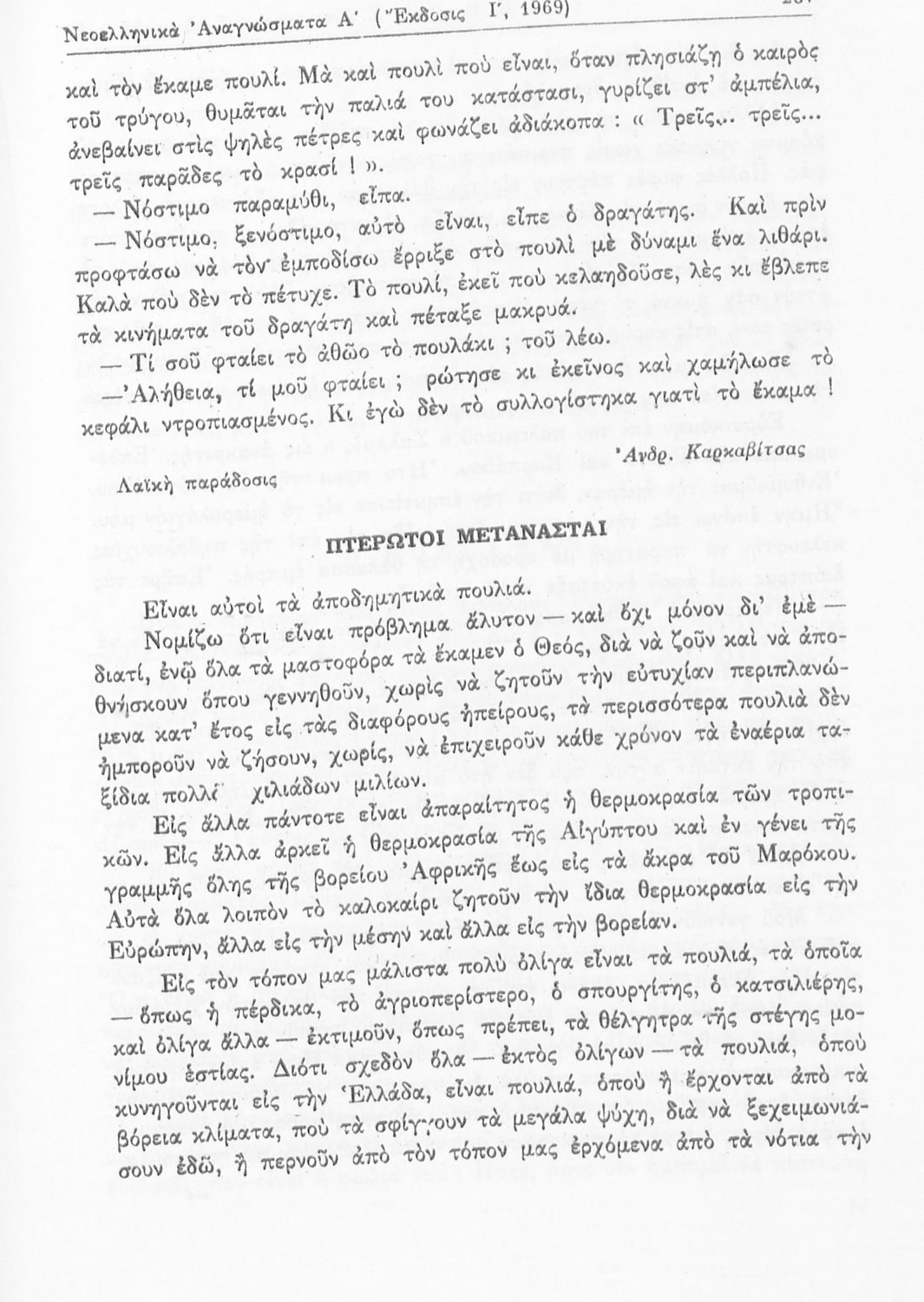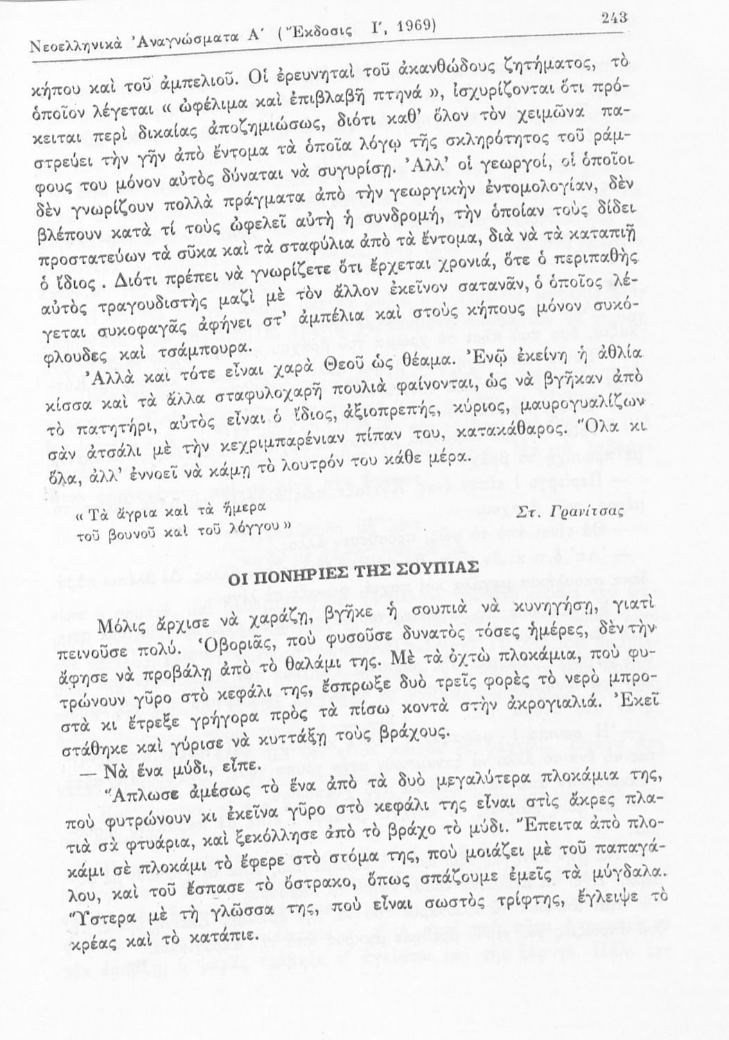 Σχολικό εγχειρίδιο Νέων Ελληνικών Γ΄ Γυμνασίου και Α' Αστικού Σχολείου που περιέχει πεζά και ποιήματα Ελλήνων συγγραφέων εμπνευσμένα από τη θρησκευτική και κοινωνική ζωή, την ελληνική μυθολογία, την αρχαία και