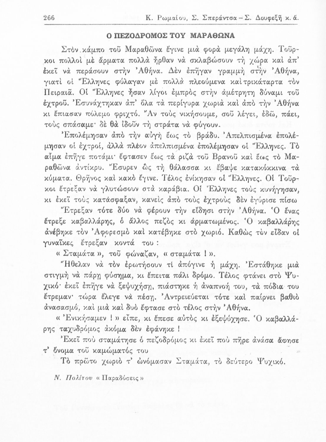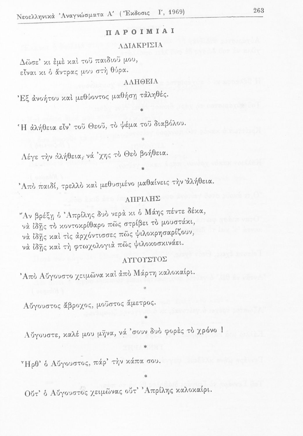 Σχολικό εγχειρίδιο Νέων Ελληνικών Γ΄ Γυμνασίου και Α' Αστικού Σχολείου που περιέχει πεζά και ποιήματα Ελλήνων συγγραφέων εμπνευσμένα από τη θρησκευτική και κοινωνική ζωή, την ελληνική μυθολογία, την αρχαία και