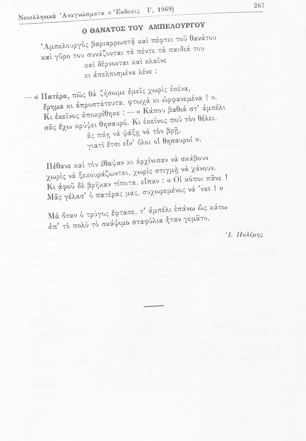 Σχετιζόμενοι όροι:  Παπαντωνίου, Πολέμης, Παλαμάς, Βηλαράς