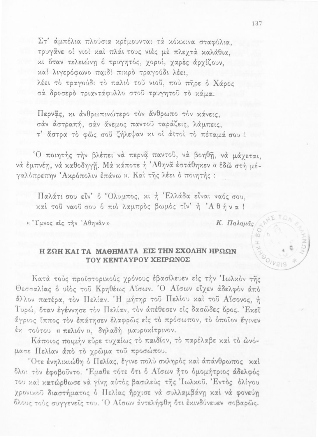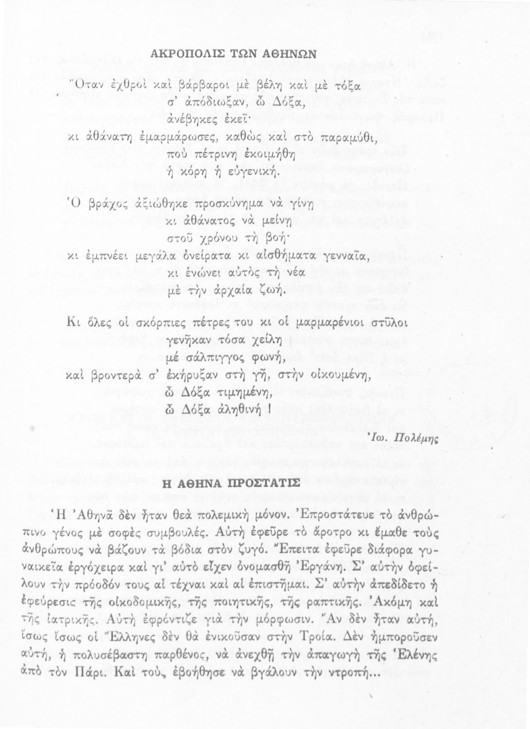 Σχετιζόμενοι όροι:  Παπαντωνίου, Πολέμης, Παλαμάς, Βηλαράς