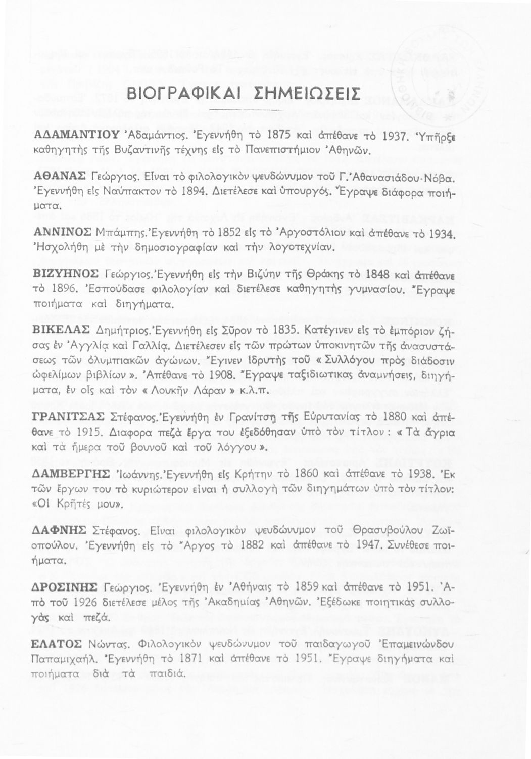 Σχετιζόμενοι όροι:  Παπαντωνίου, Πολέμης, Παλαμάς, Βηλαράς