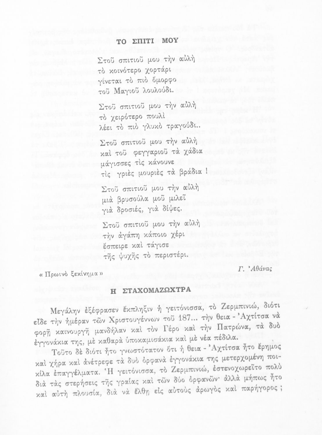 Σχολικό εγχειρίδιο Νέων Ελληνικών Γ΄ Γυμνασίου και Α' Αστικού Σχολείου που περιέχει πεζά και ποιήματα Ελλήνων συγγραφέων εμπνευσμένα από τη θρησκευτική και κοινωνική ζωή, την ελληνική μυθολογία, την αρχαία και