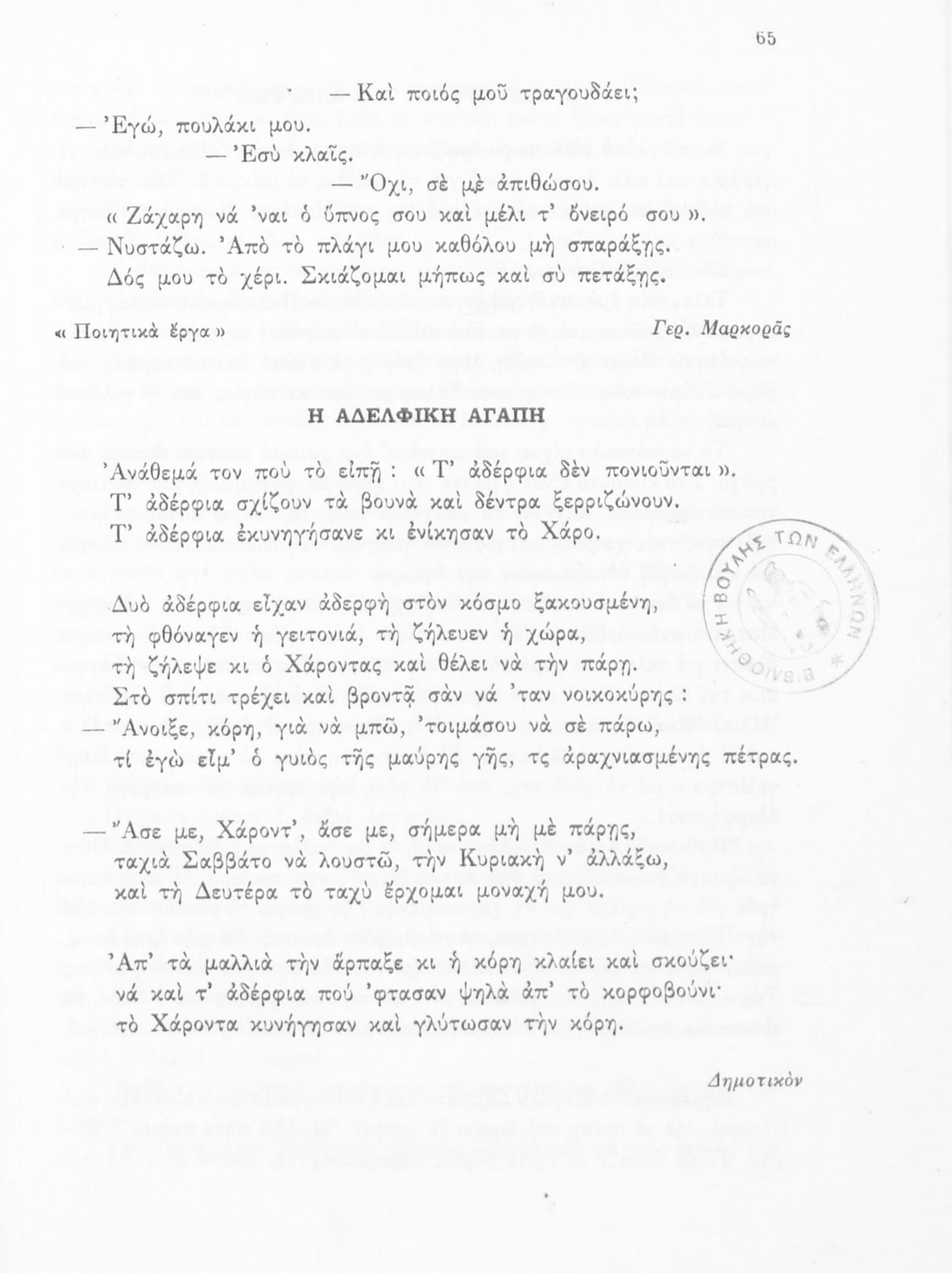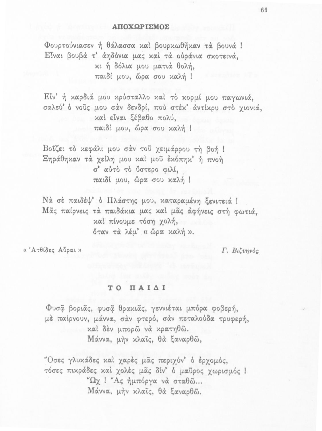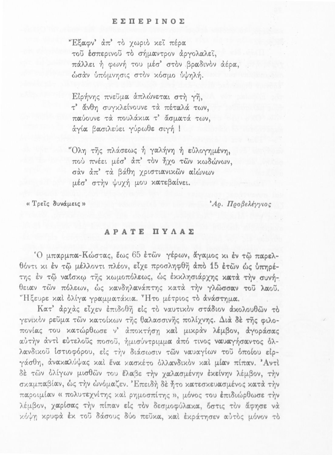 Σχετιζόμενοι όροι:  Παπαντωνίου, Πολέμης, Παλαμάς, Βηλαράς