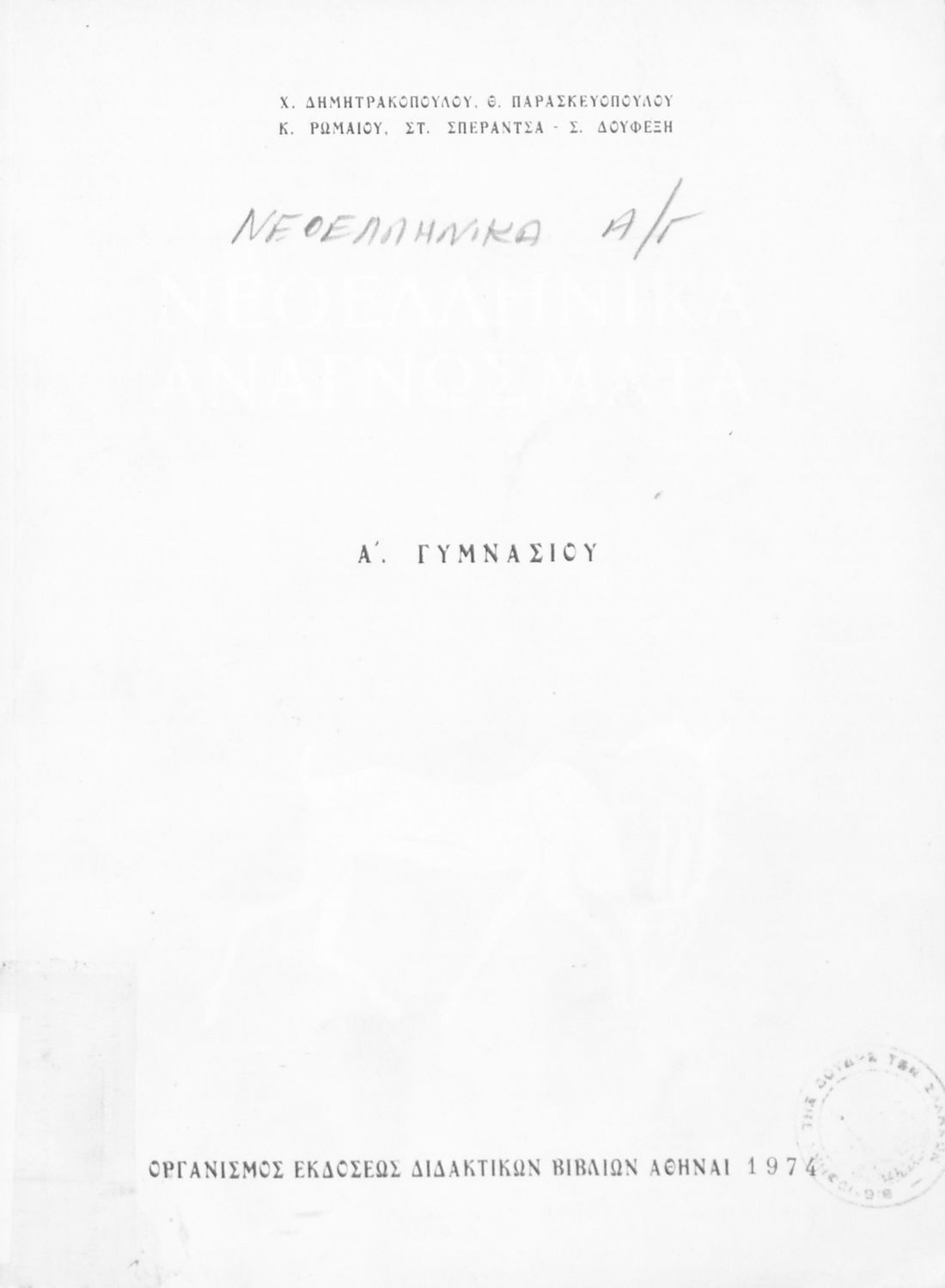 Τίτλος: Νεοελληνικά αναγνώσματα Α΄ Γυμνασίου