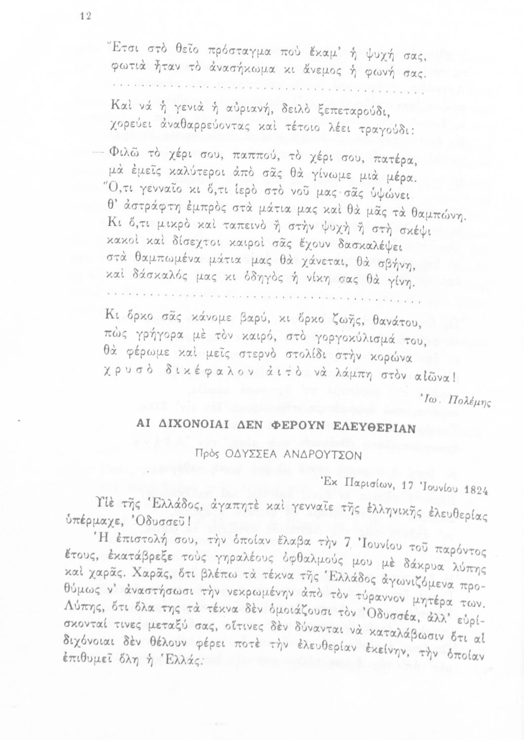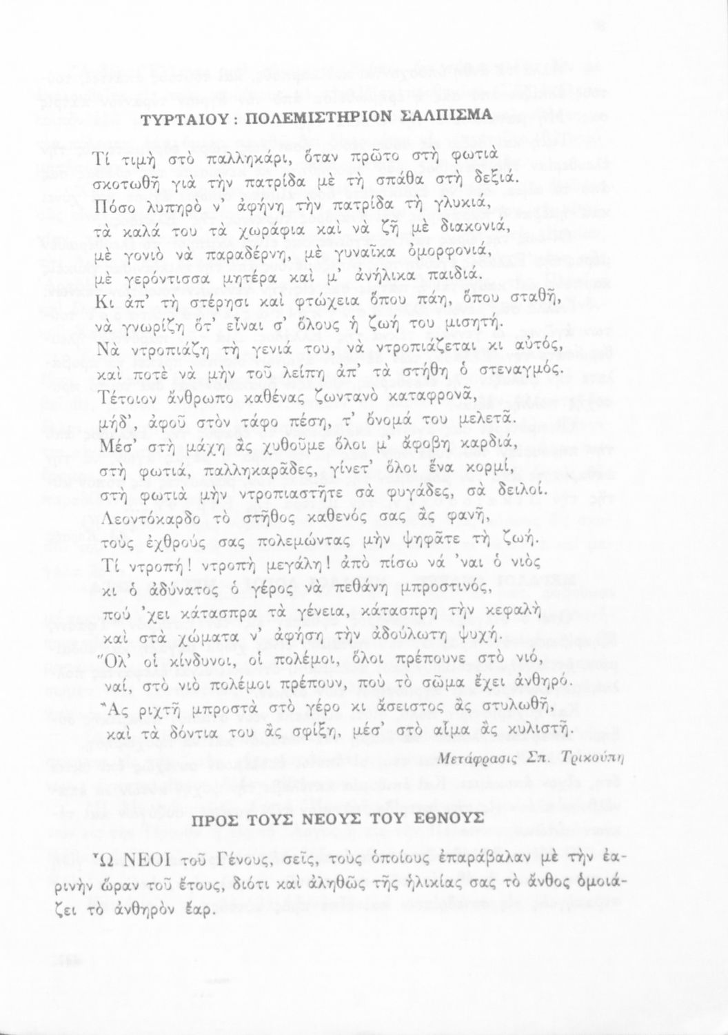 Σχετιζόμενοι όροι:  Παπαντωνίου, Πολέμης, Παλαμάς, Βηλαράς