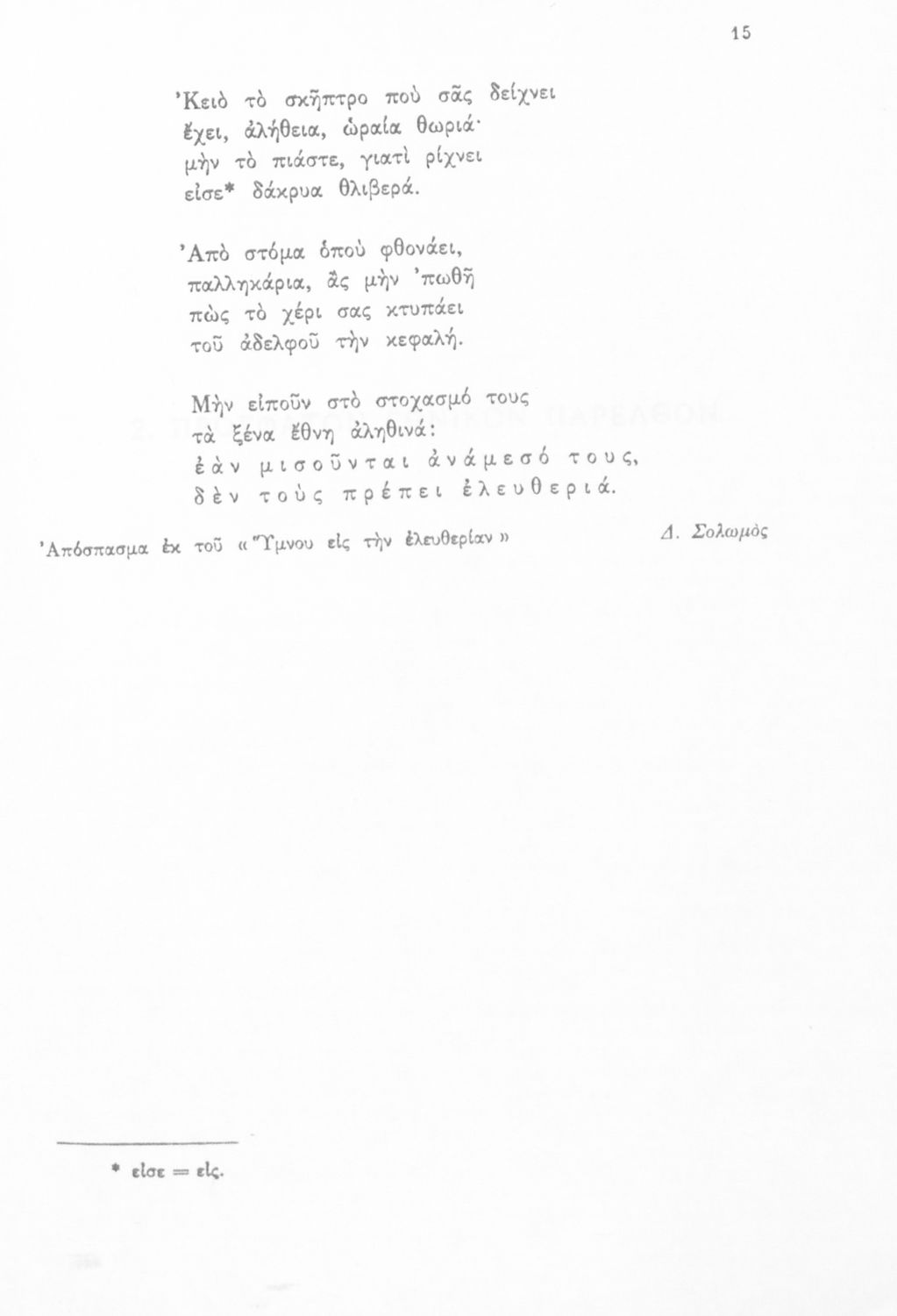 Σχολικό εγχειρίδιο Νέων Ελληνικών Γ΄ Γυμνασίου και Α' Αστικού Σχολείου που περιέχει πεζά και ποιήματα Ελλήνων συγγραφέων εμπνευσμένα από τη θρησκευτική και κοινωνική ζωή, την ελληνική μυθολογία, την αρχαία και