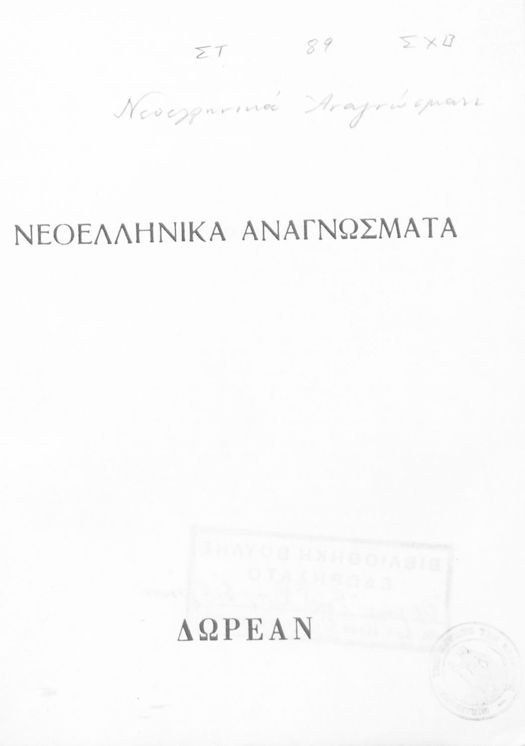 Εντοπισμός πρωτοτύπου: Βιβλιοθήκη της Βουλής των Ελλήνων
