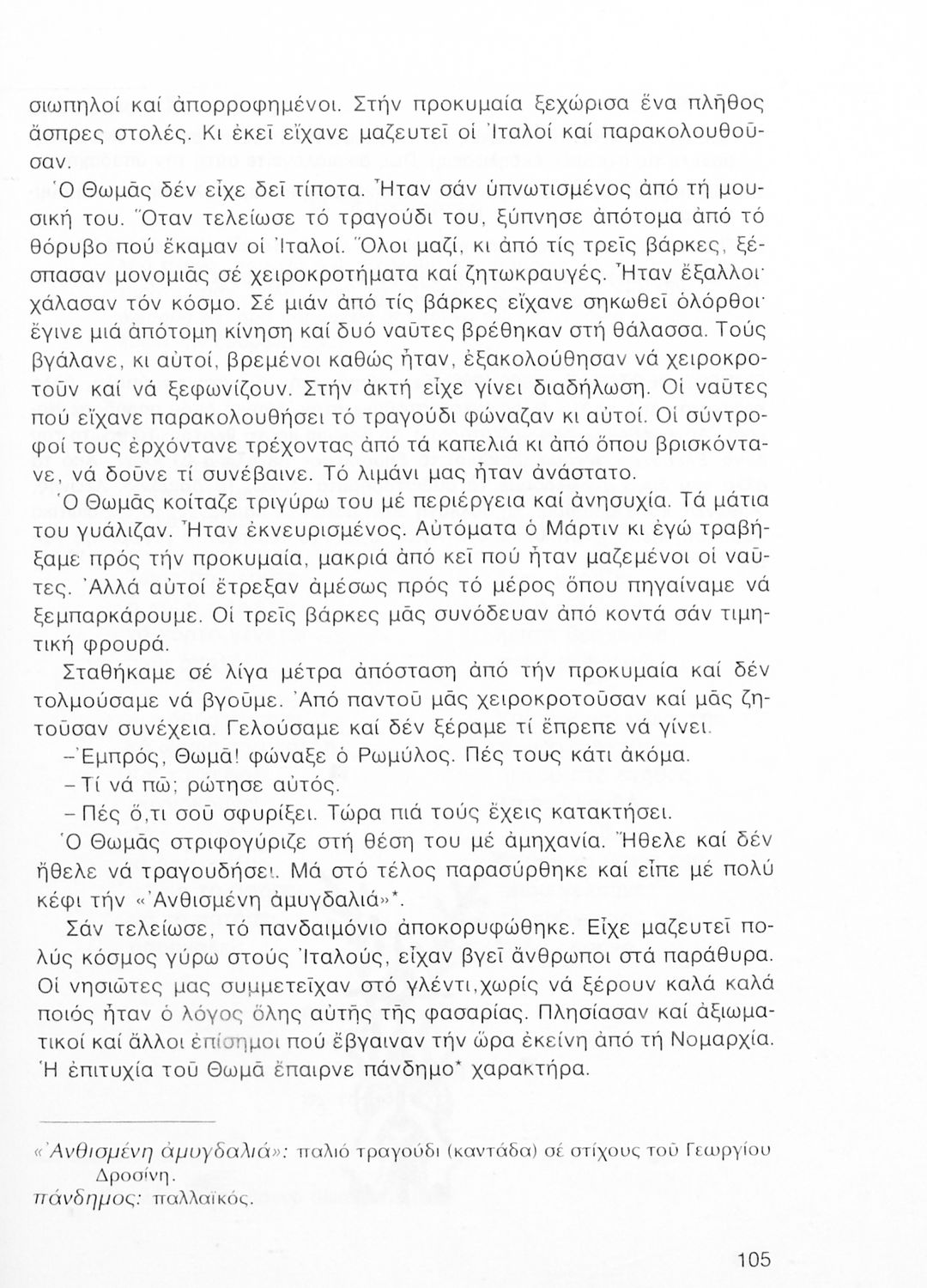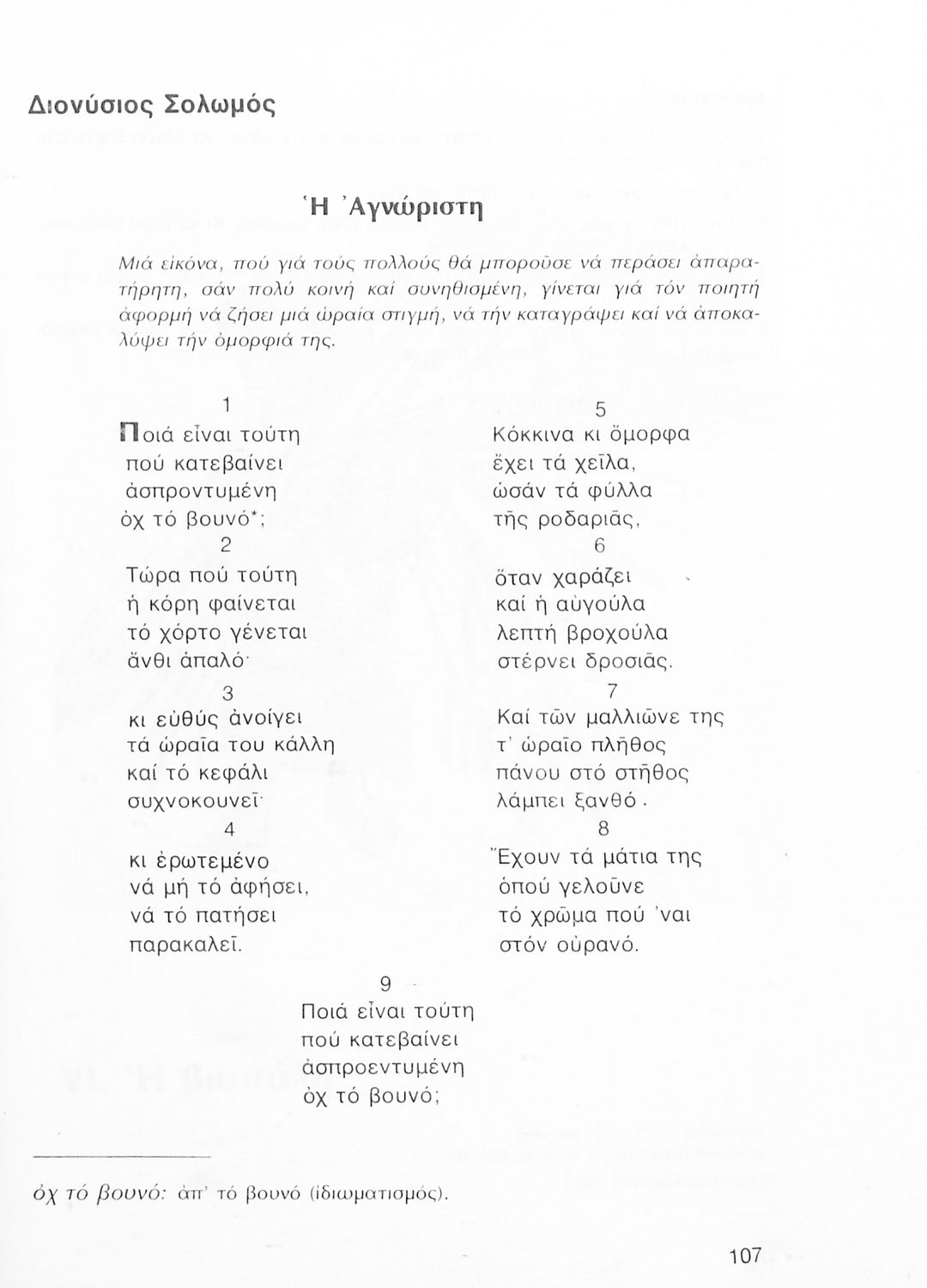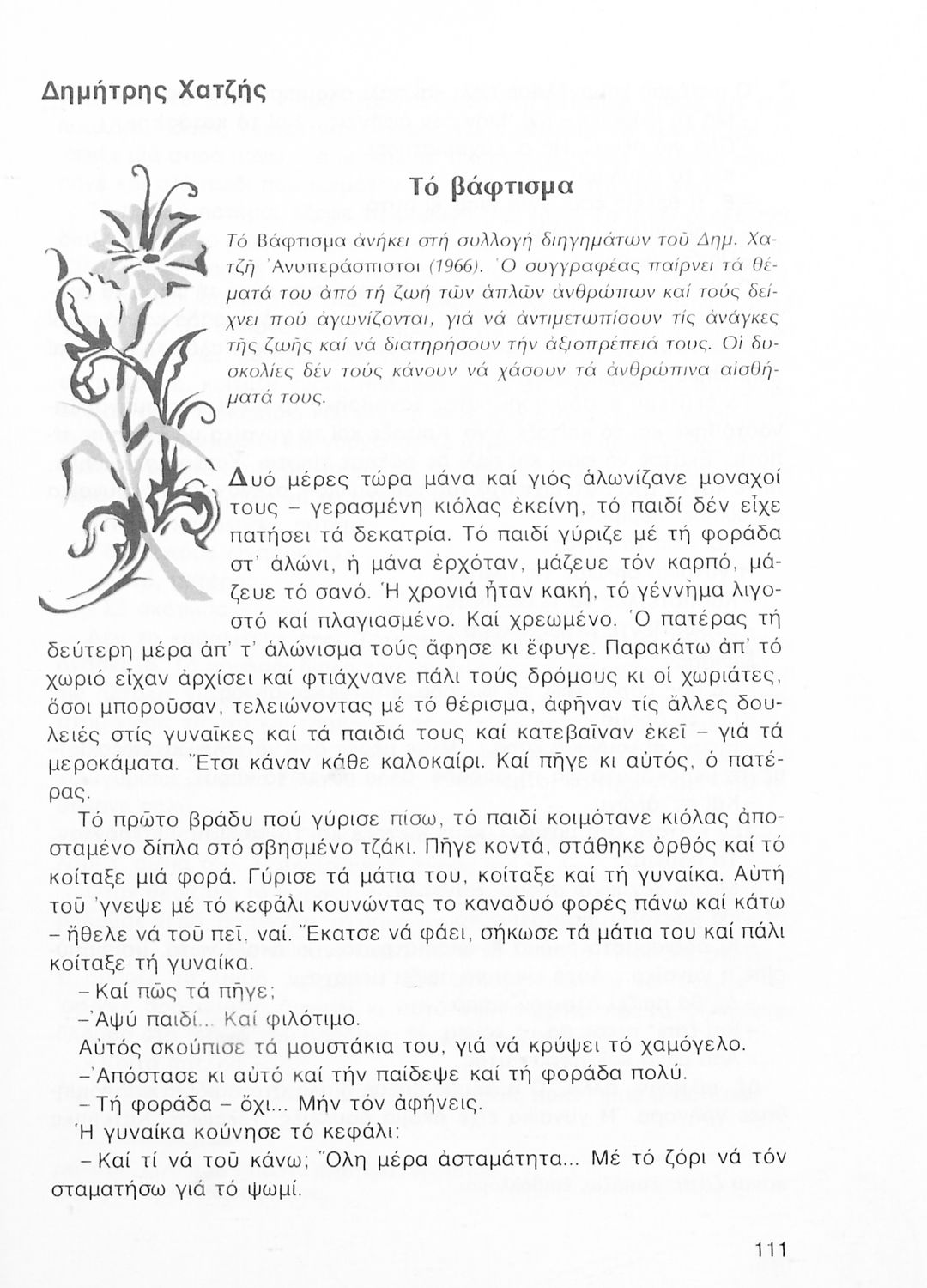 Σχολικό εγχειρίδιο Νέων Ελληνικών Α΄ Γυμνασίου που περιλαμβάνει δοκίμια, πεζά και ποιήματα Ελλήνων συγγραφέων και δημοτικά τραγούδια εμπνευσμένα από τη θρησκευτική, εθνική και κοινωνική ζωή, τη "δοκιμασία της Κύπρου", και την ελληνική φύση. Περιέχει και έργα ευρωπαίων συγγραφέων.