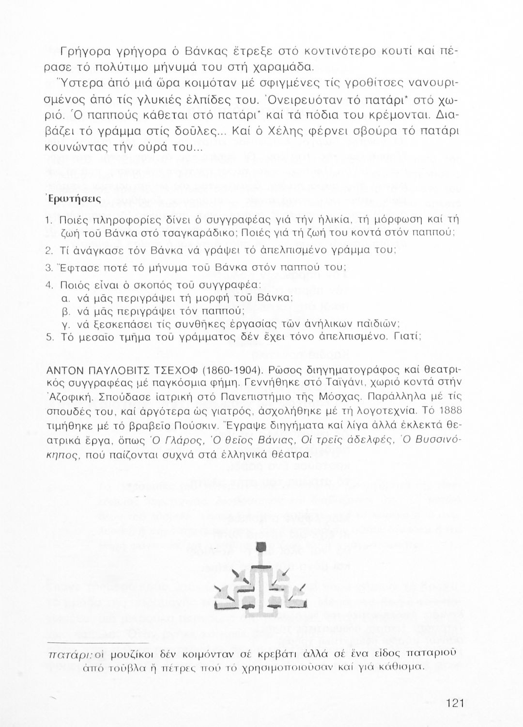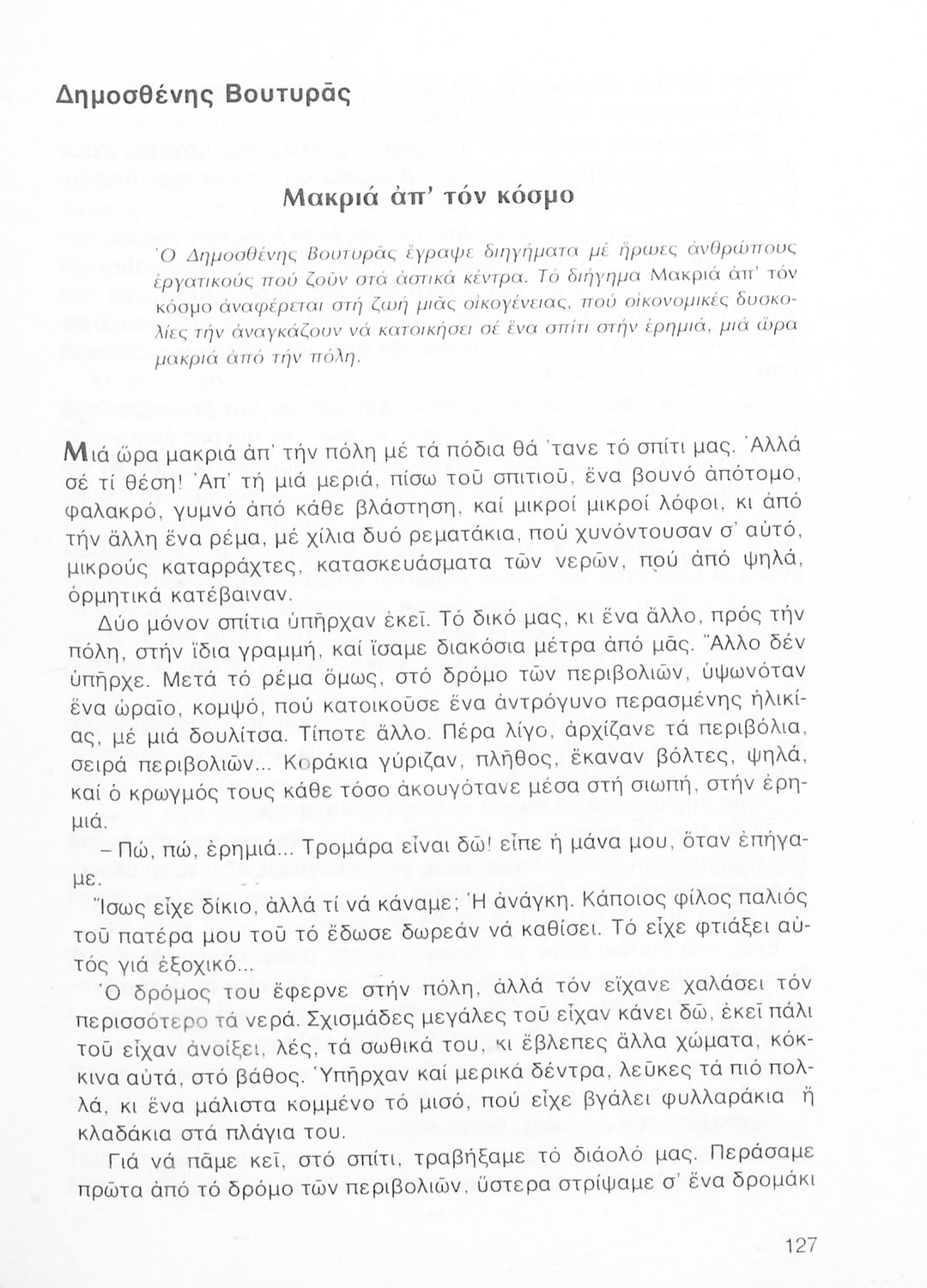 Σχολικό εγχειρίδιο Νέων Ελληνικών Α΄ Λυκείου που περιλαμβάνει πεζά, ποιήματα, δοκίμια και θεατρικά έργα σύγχρονων Ελλήνων και κλασσικών ξένων συγγραφέων, ερωτήσεις και βιογραφικά σημειώματα