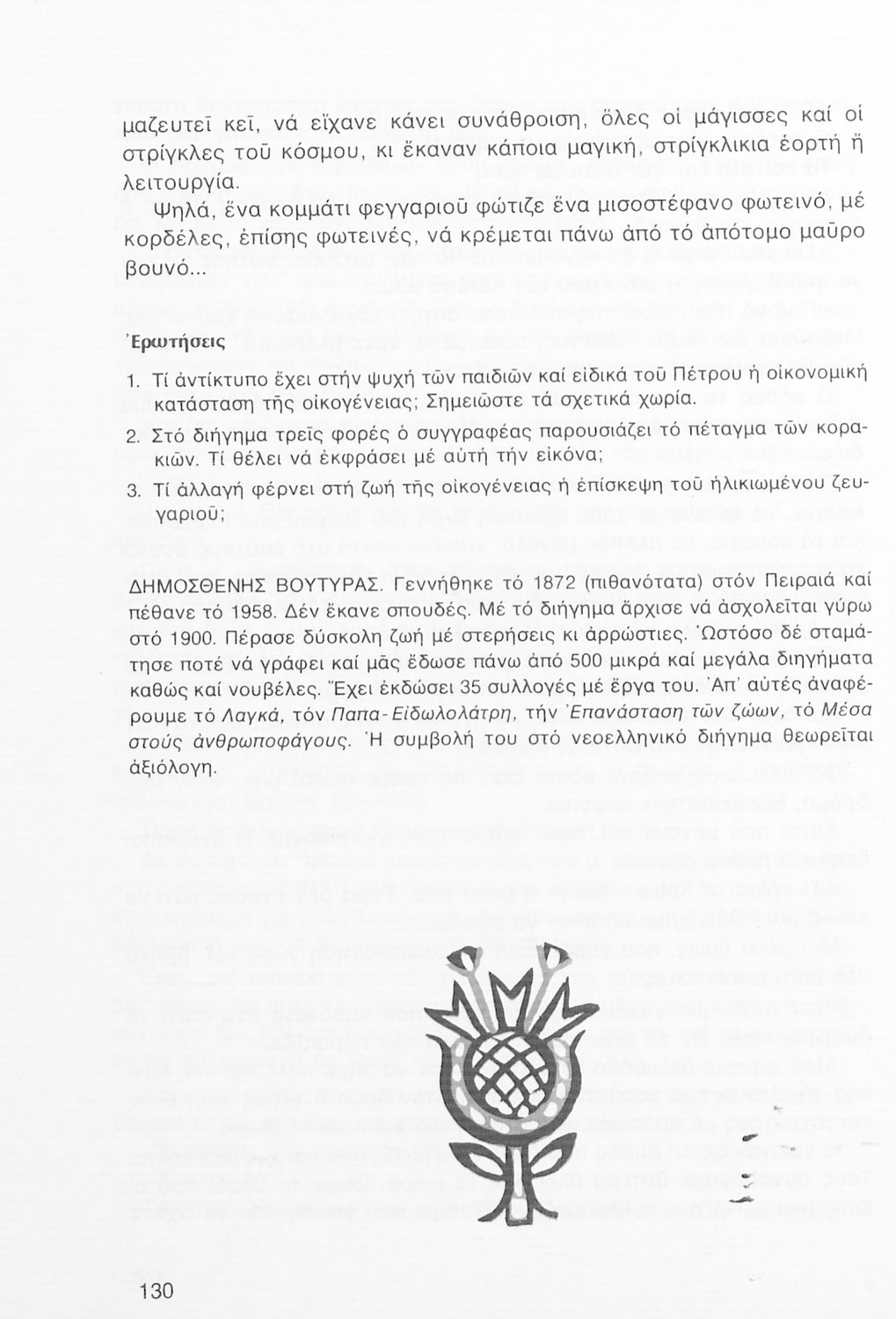 Σχολικό εγχειρίδιο Νέων Ελληνικών Α΄ Γυμνασίου που περιλαμβάνει δοκίμια, πεζά και ποιήματα Ελλήνων συγγραφέων και δημοτικά τραγούδια εμπνευσμένα από τη θρησκευτική, εθνική και κοινωνική ζωή, τη "δοκιμασία της ...