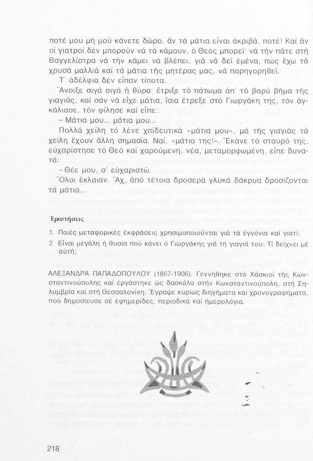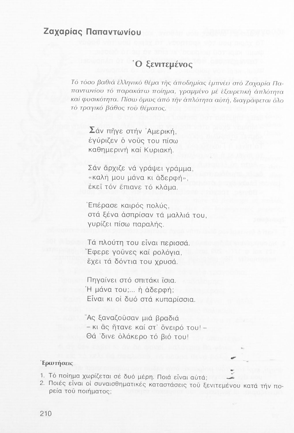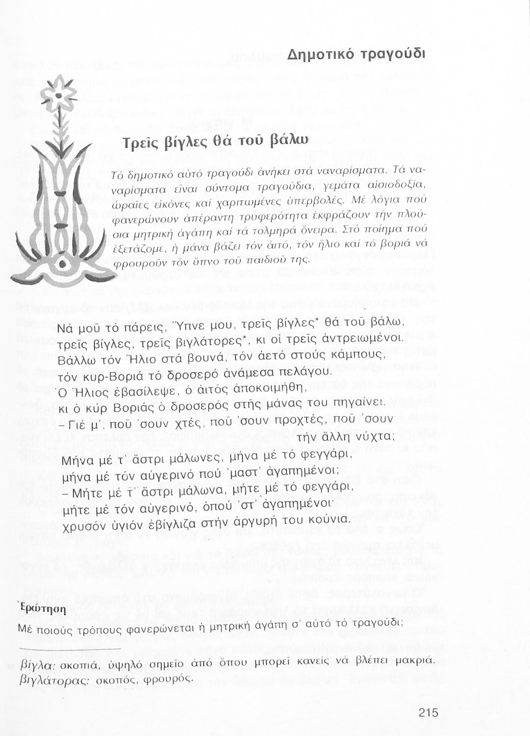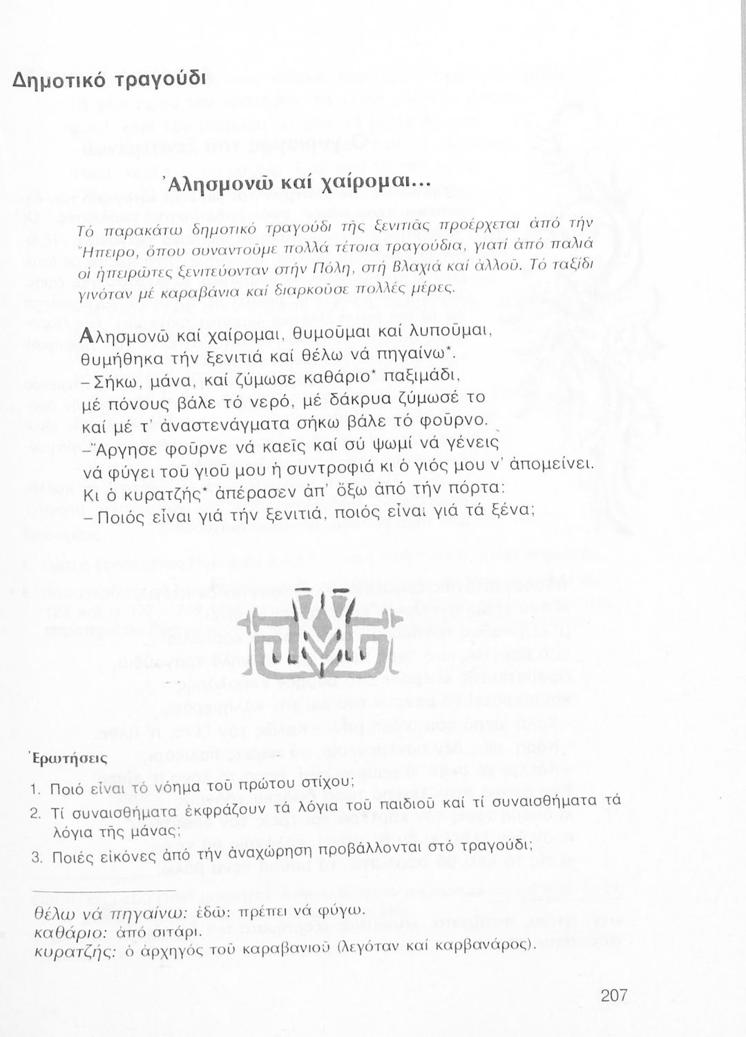 Σχολικό εγχειρίδιο Νέων Ελληνικών Α΄ Γυμνασίου που περιλαμβάνει δοκίμια, πεζά και ποιήματα Ελλήνων συγγραφέων και δημοτικά τραγούδια εμπνευσμένα από τη θρησκευτική, εθνική και κοινωνική ζωή, τη "δοκιμασία της Κύπρου", και την ελληνική φύση. Περιέχει και έργα ευρωπαίων συγγραφέων.
