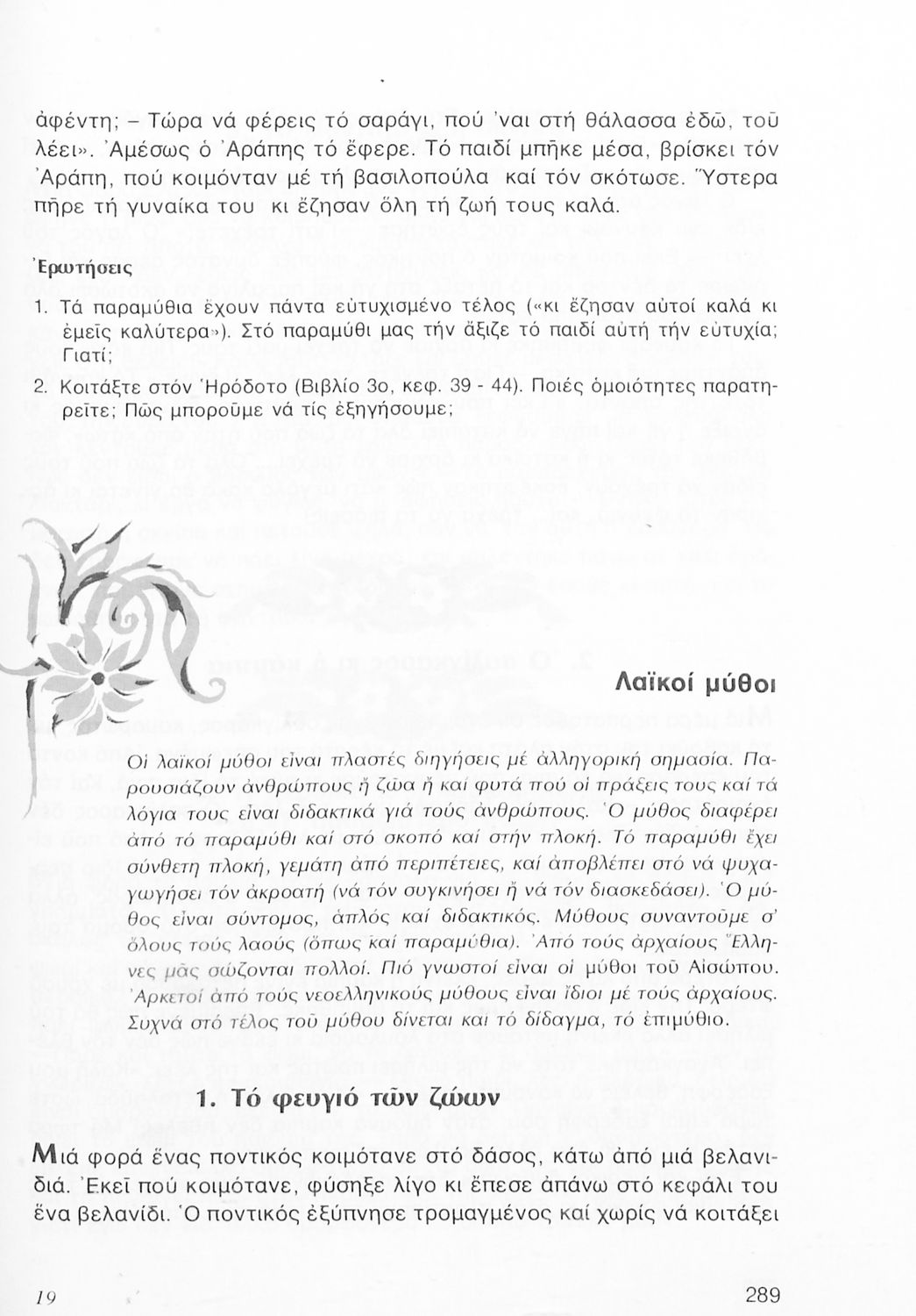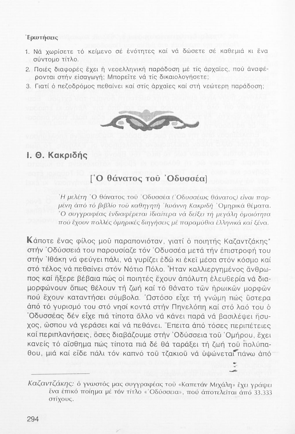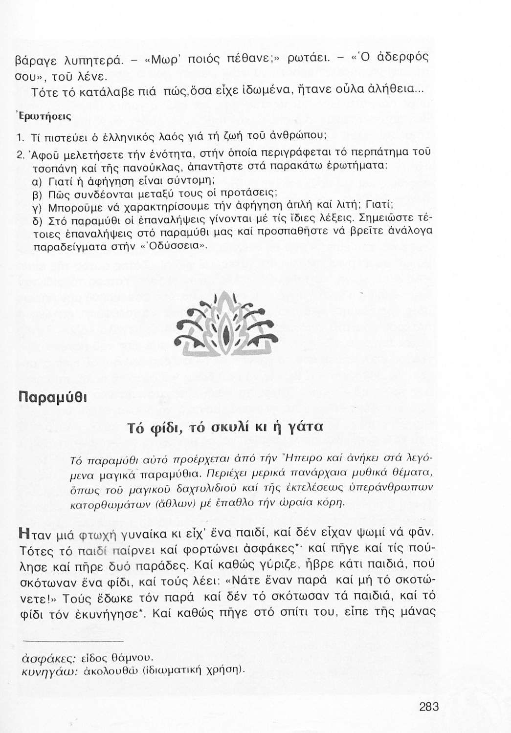 Σχολικό εγχειρίδιο Νέων Ελληνικών Α΄ Γυμνασίου που περιλαμβάνει δοκίμια, πεζά και ποιήματα Ελλήνων συγγραφέων και δημοτικά τραγούδια εμπνευσμένα από τη θρησκευτική, εθνική και κοινωνική ζωή, τη "δοκιμασία της ...