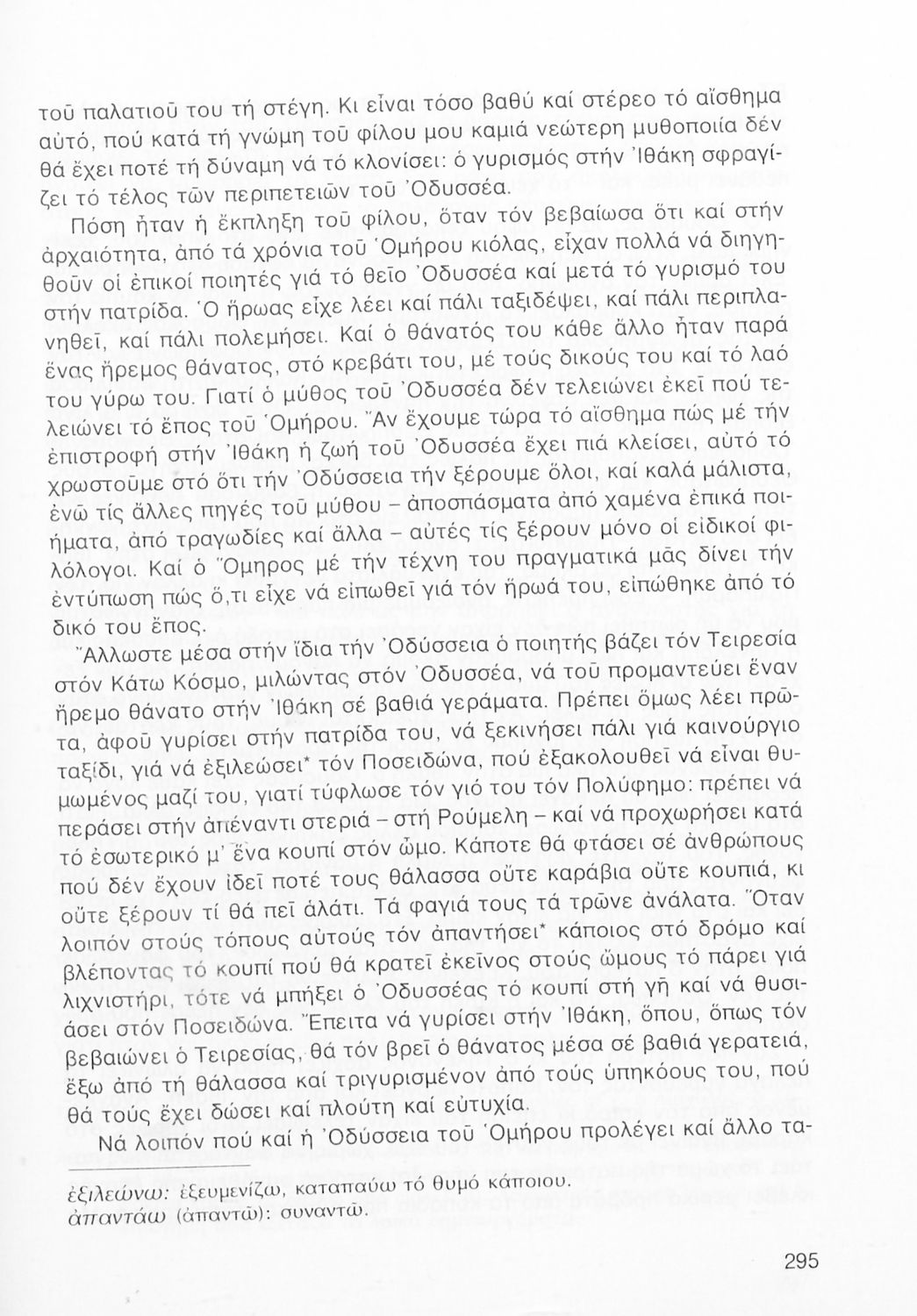 Σχολικό εγχειρίδιο Νέων Ελληνικών Α΄ Γυμνασίου που περιλαμβάνει δοκίμια, πεζά και ποιήματα Ελλήνων συγγραφέων και δημοτικά τραγούδια εμπνευσμένα από τη θρησκευτική, εθνική και κοινωνική ζωή, τη "δοκιμασία της Κύπρου", και την ελληνική φύση. Περιέχει και έργα ευρωπαίων συγγραφέων.