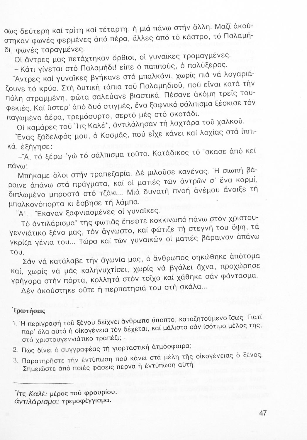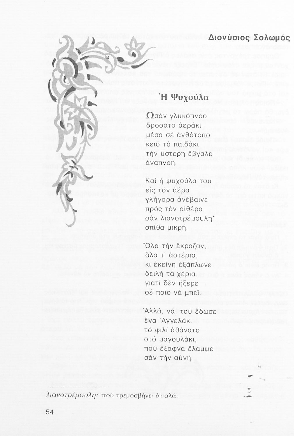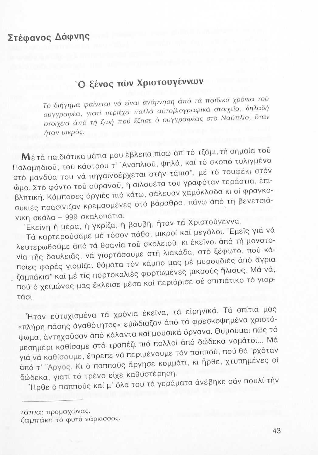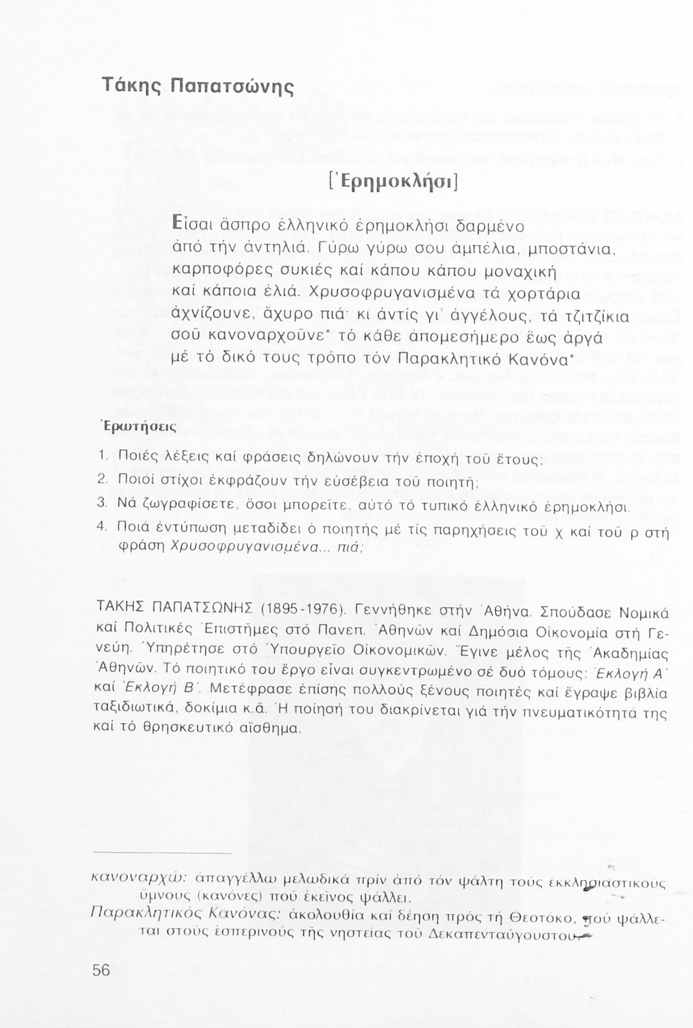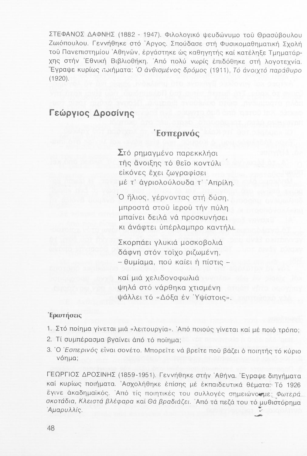Σχολικό εγχειρίδιο Νέων Ελληνικών Α΄ Γυμνασίου που περιλαμβάνει δοκίμια, πεζά και ποιήματα Ελλήνων συγγραφέων και δημοτικά τραγούδια εμπνευσμένα από τη θρησκευτική, εθνική και κοινωνική ζωή, τη "δοκιμασία της Κύπρου", και την ελληνική φύση. Περιέχει και έργα ευρωπαίων συγγραφέων.