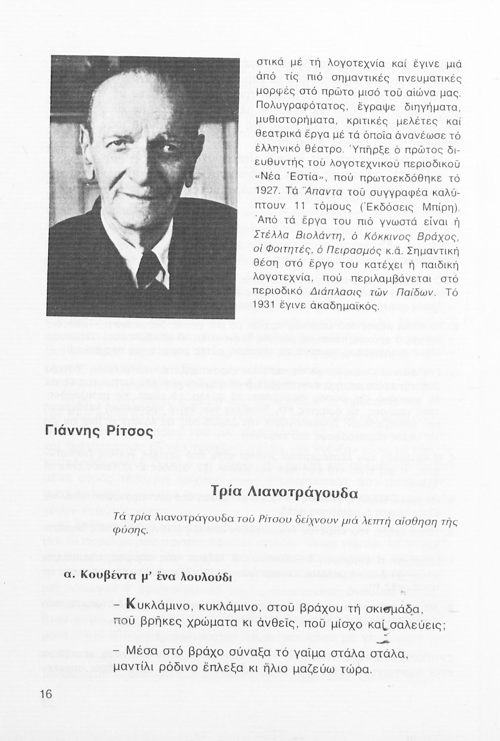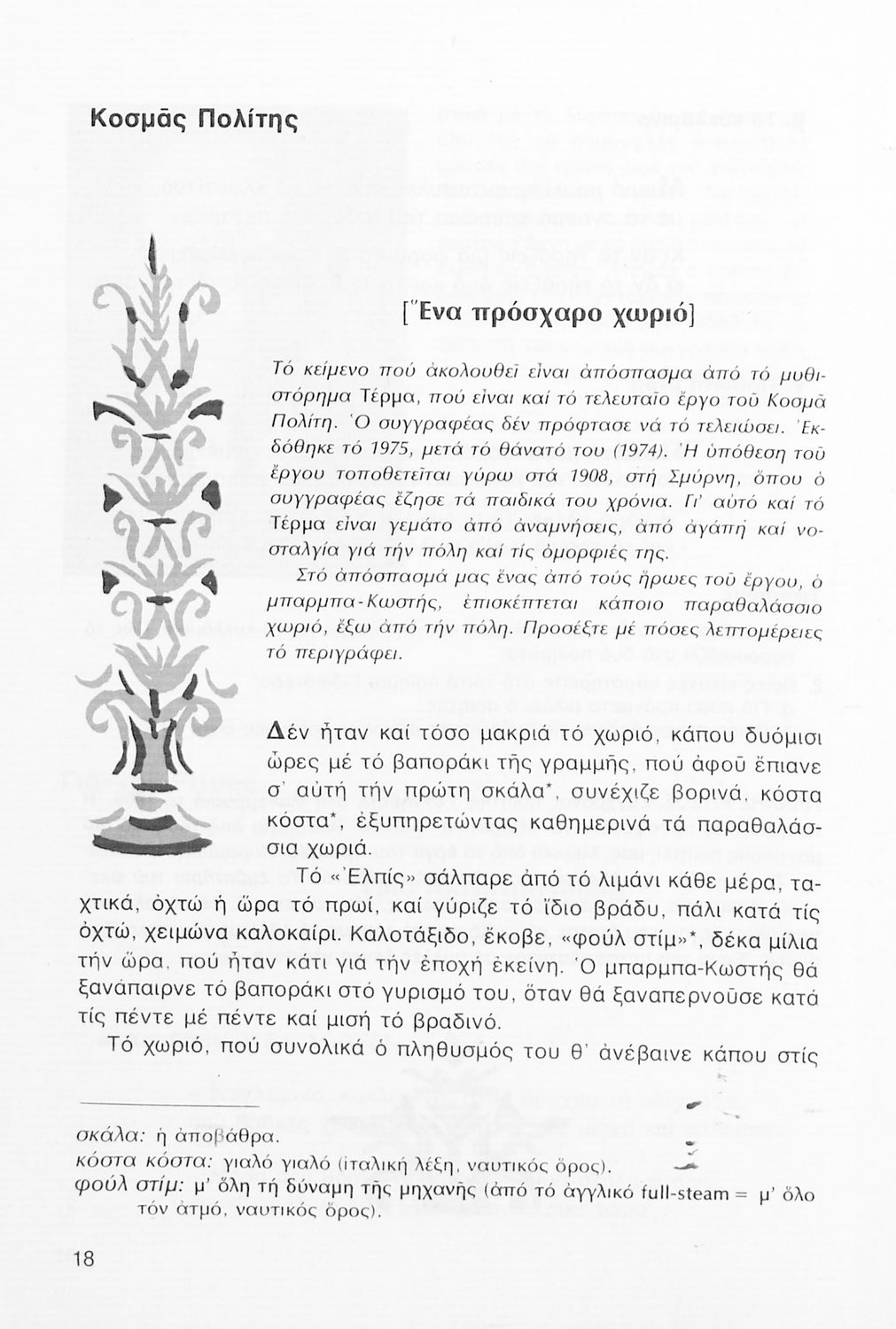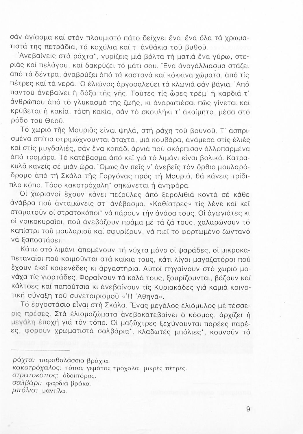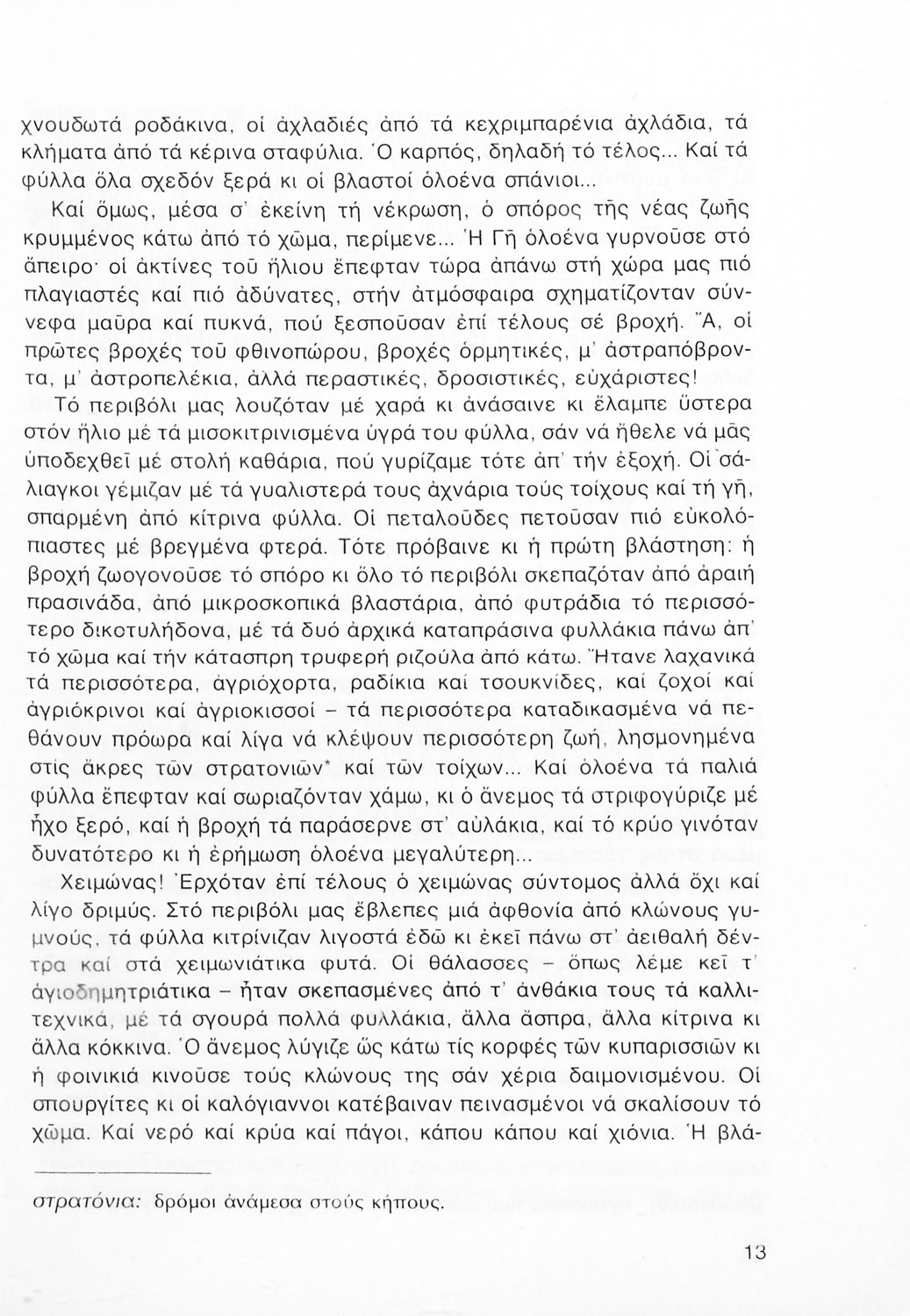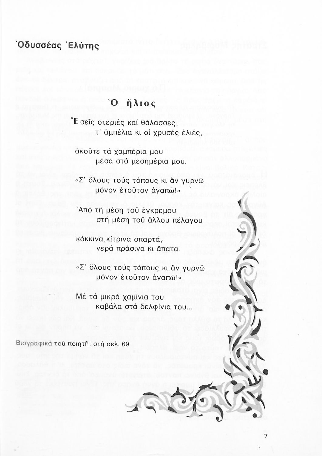Σχολικό εγχειρίδιο Νέων Ελληνικών Α΄ Γυμνασίου που περιλαμβάνει δοκίμια, πεζά και ποιήματα Ελλήνων συγγραφέων και δημοτικά τραγούδια εμπνευσμένα από τη θρησκευτική, εθνική και κοινωνική ζωή, τη "δοκιμασία της Κύπρου", και την ελληνική φύση. Περιέχει και έργα ευρωπαίων συγγραφέων.