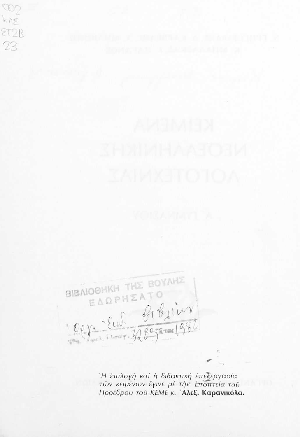 Εντοπισμός πρωτοτύπου: Βιβλιοθήκη της Βουλής των Ελλήνων Κωδικός βιβλιοθήκης: 20556123 |