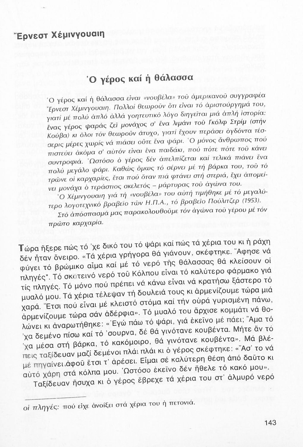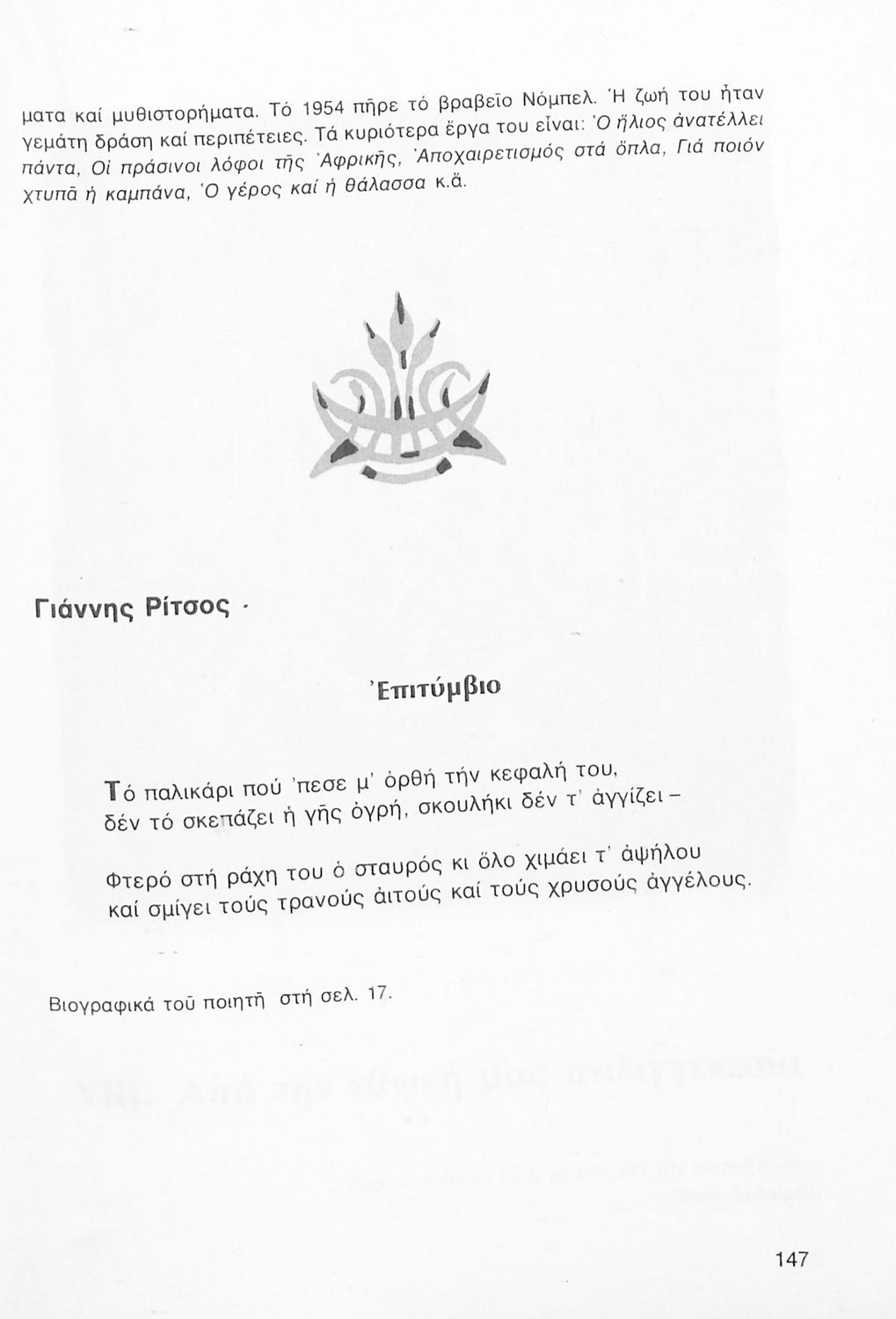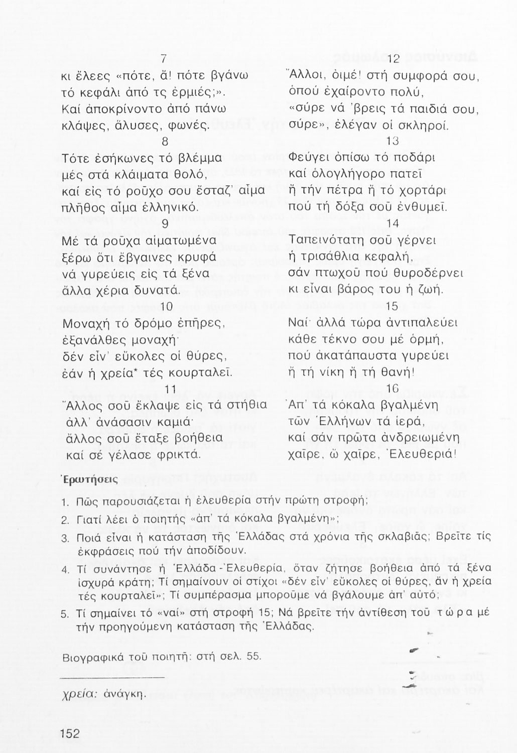 Σχολικό εγχειρίδιο Νέων Ελληνικών Α΄ Γυμνασίου που περιλαμβάνει δοκίμια, πεζά και ποιήματα Ελλήνων συγγραφέων και δημοτικά τραγούδια εμπνευσμένα από τη θρησκευτική, εθνική και κοινωνική ζωή, τη "δοκιμασία της Κύπρου", και την ελληνική φύση. Περιέχει και έργα ευρωπαίων συγγραφέων.