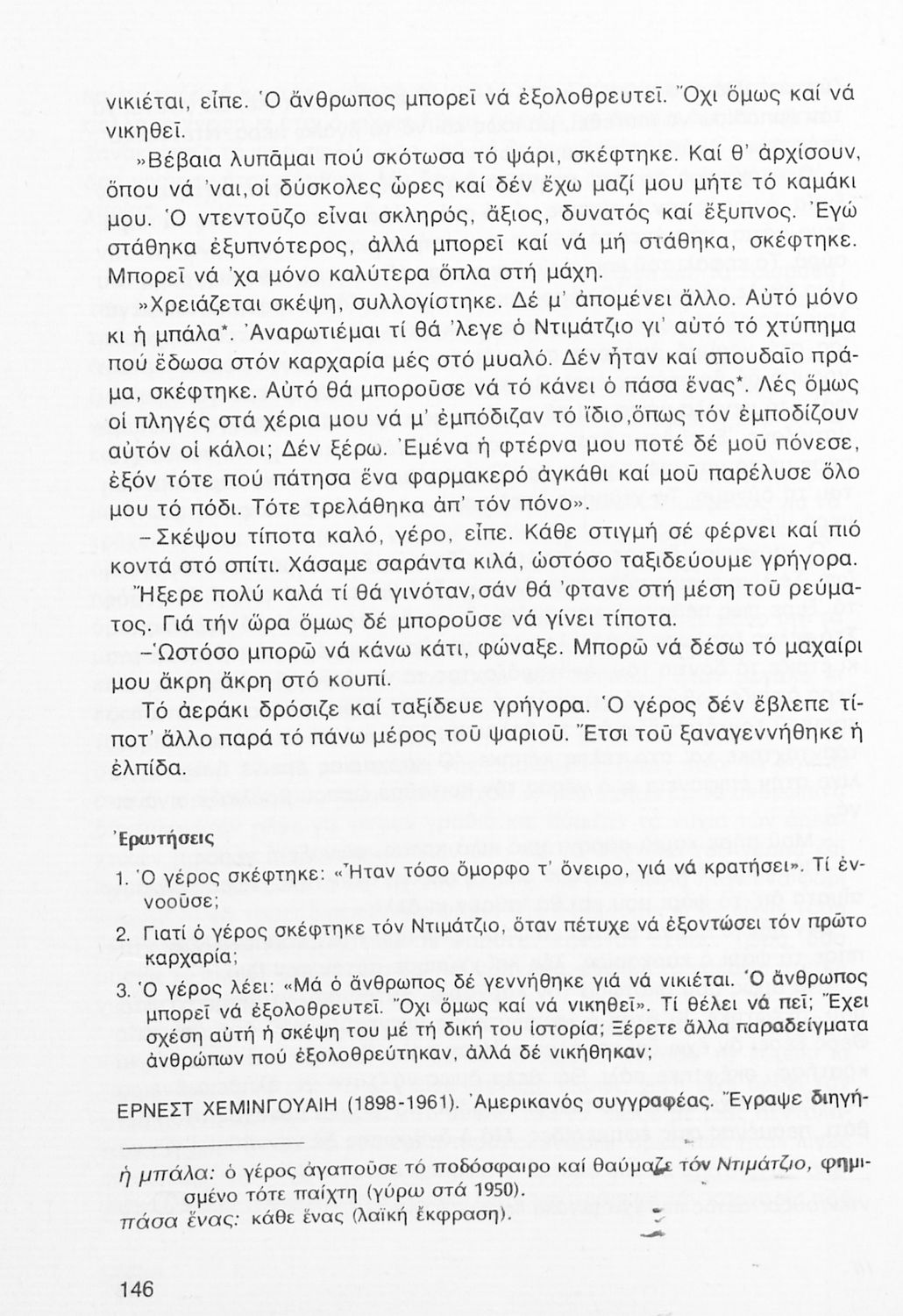 Σχολικό εγχειρίδιο Νέων Ελληνικών Α΄ Γυμνασίου που περιλαμβάνει δοκίμια, πεζά και ποιήματα Ελλήνων συγγραφέων και δημοτικά τραγούδια εμπνευσμένα από τη θρησκευτική, εθνική και κοινωνική ζωή, τη "δοκιμασία της ...