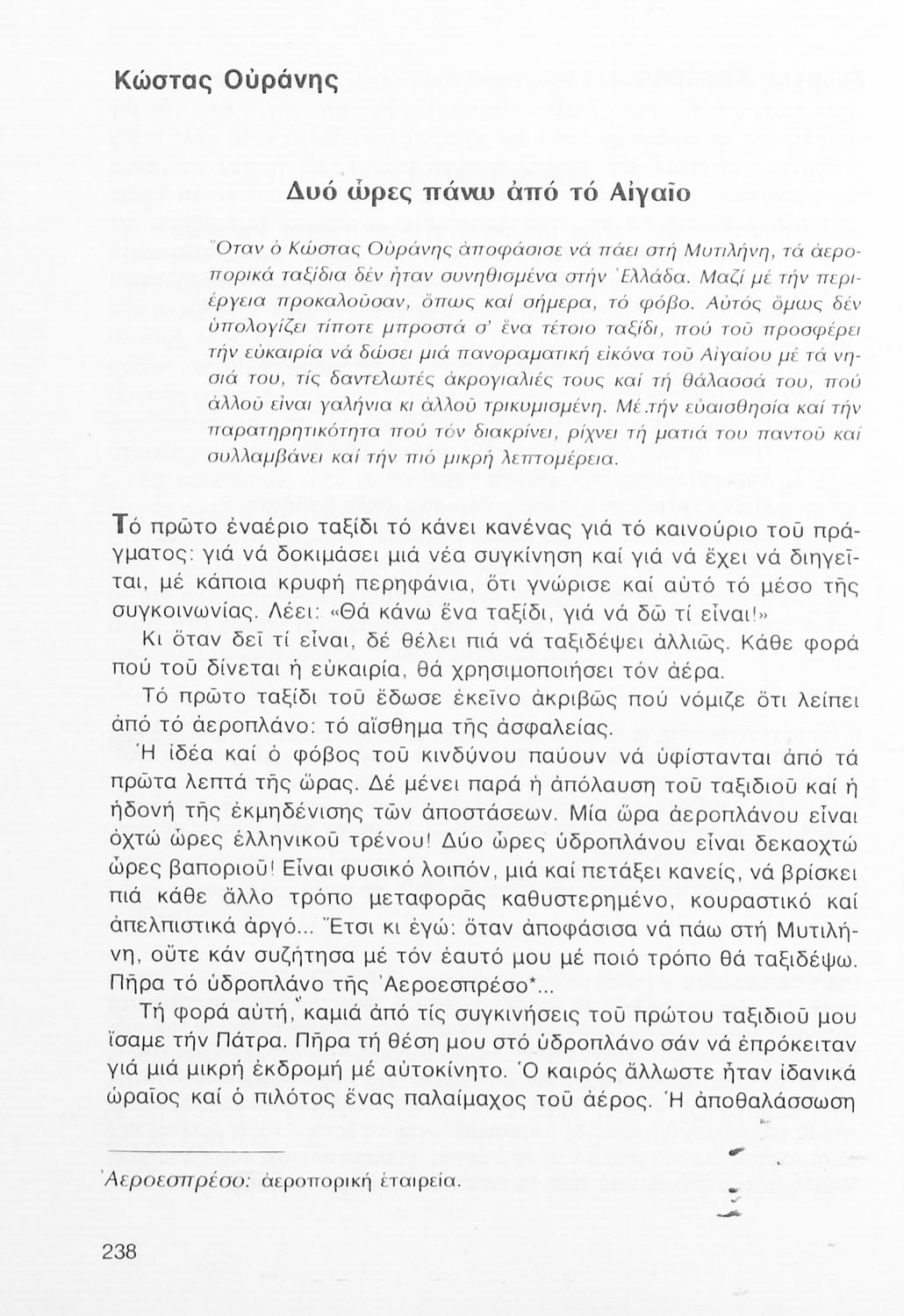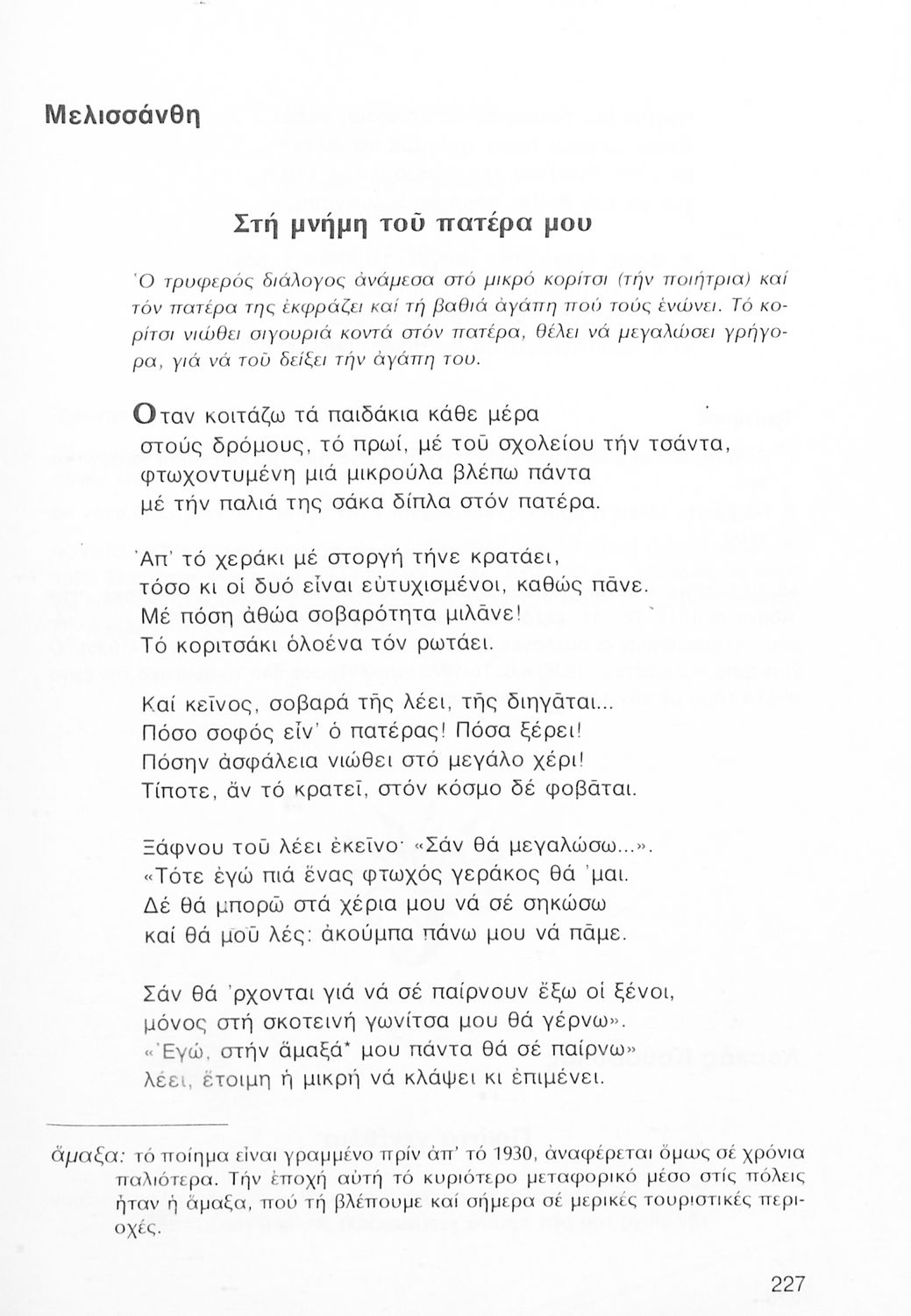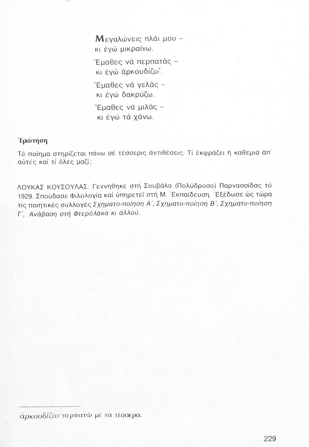 Σχολικό εγχειρίδιο Νέων Ελληνικών Α΄ Γυμνασίου που περιλαμβάνει δοκίμια, πεζά και ποιήματα Ελλήνων συγγραφέων και δημοτικά τραγούδια εμπνευσμένα από τη θρησκευτική, εθνική και κοινωνική ζωή, τη "δοκιμασία της Κύπρου", και την ελληνική φύση. Περιέχει και έργα ευρωπαίων συγγραφέων.