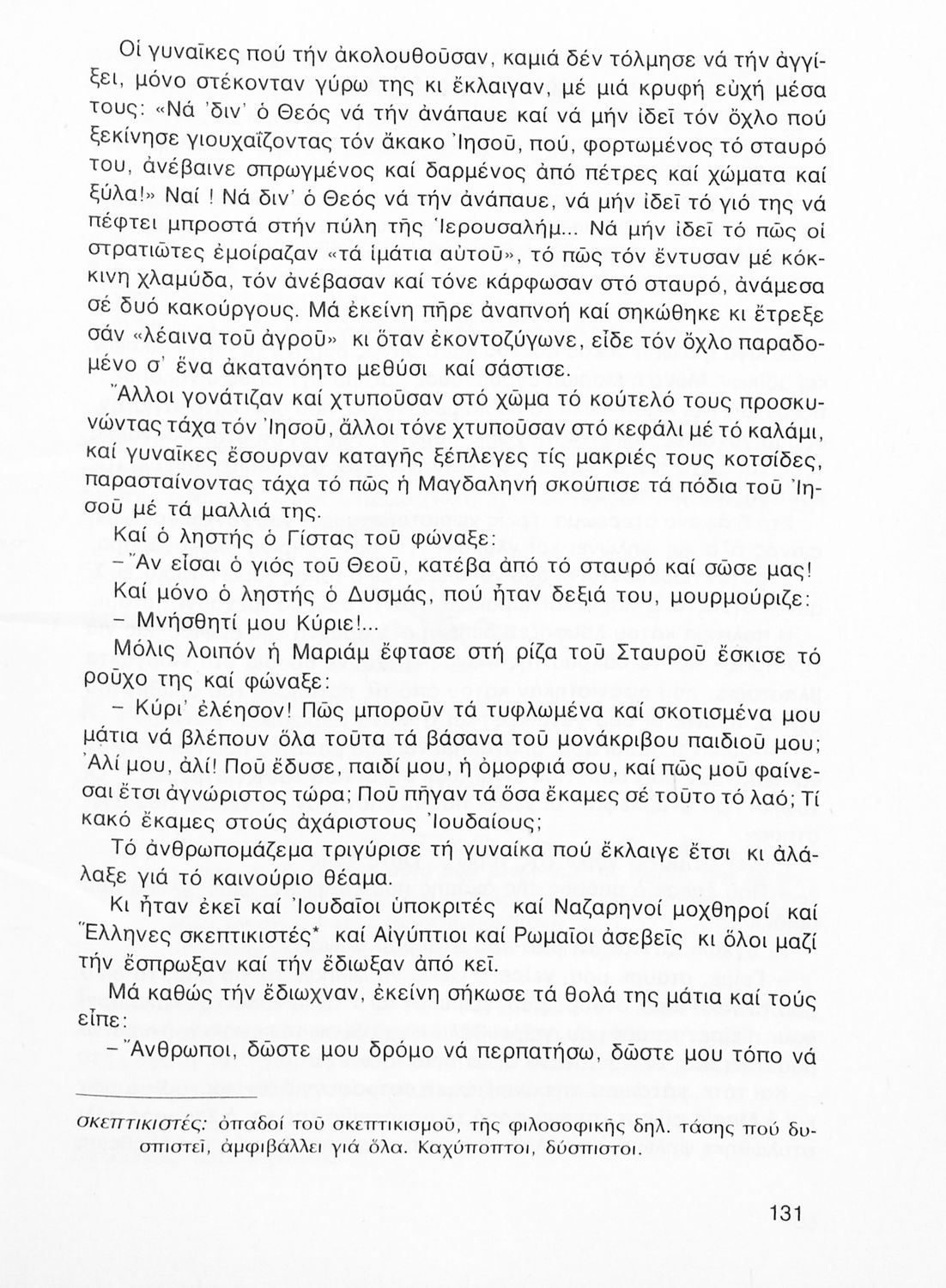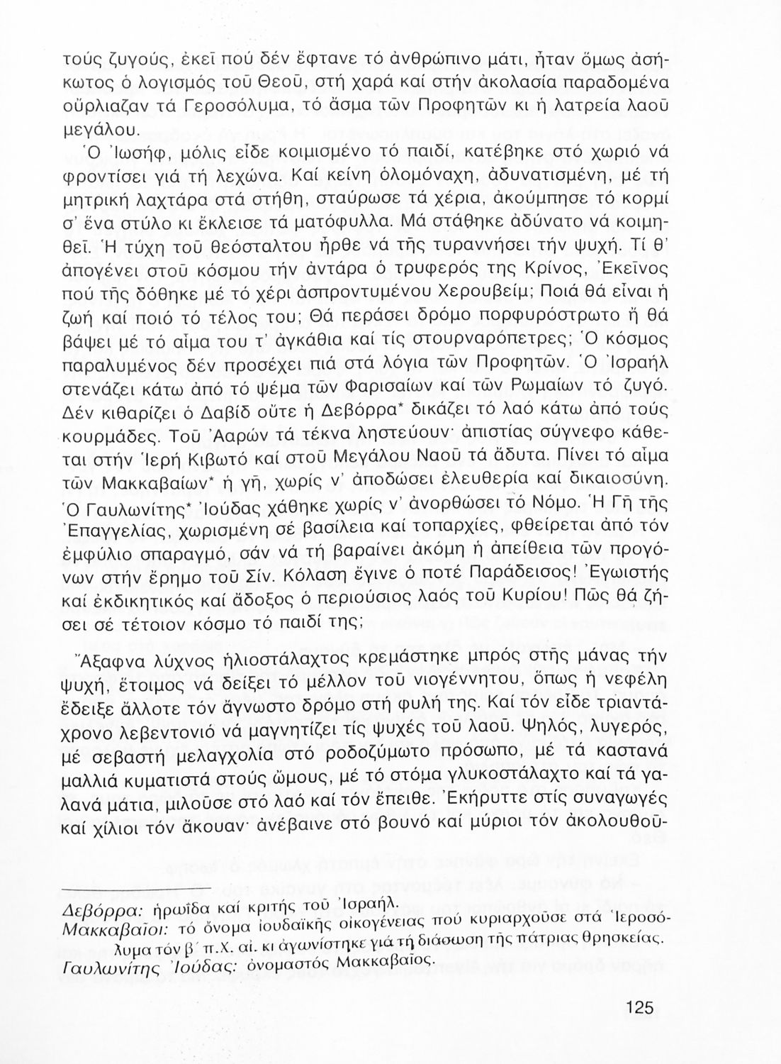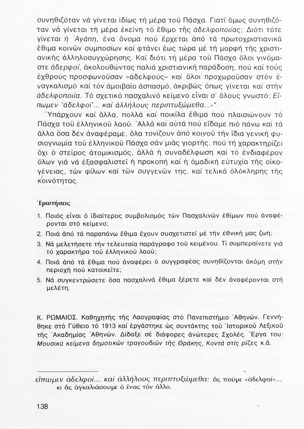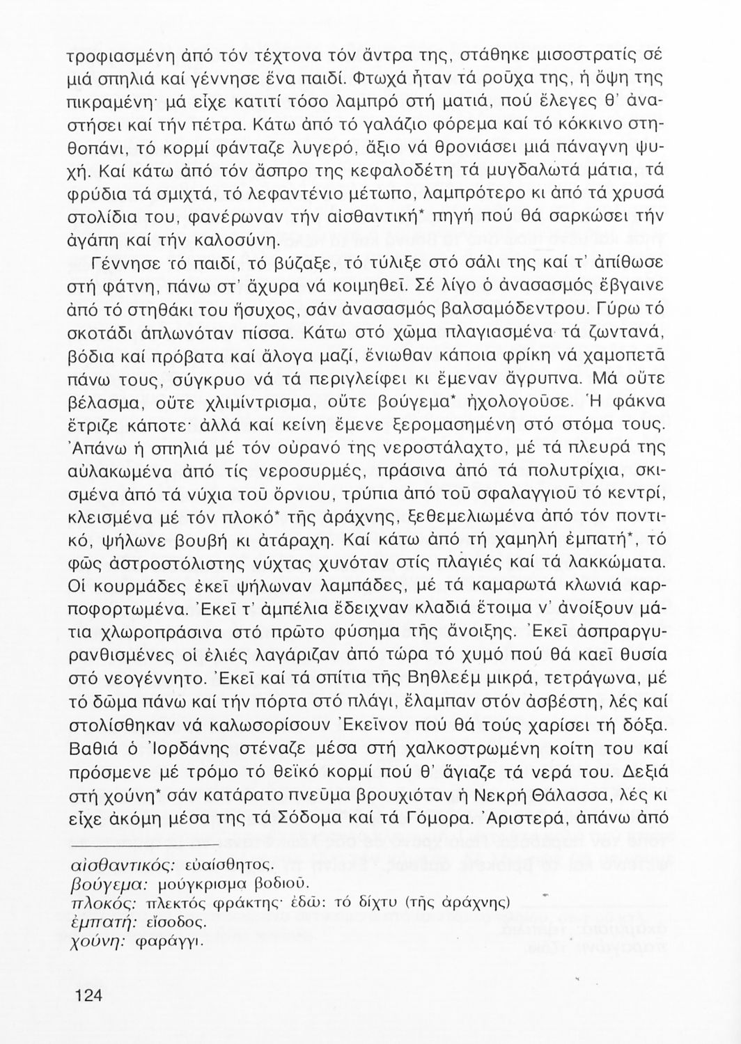 Σχολικό εγχειρίδιο Νέων Ελληνικών Β' Γυμνασίου που περιέχει δημοτικά τραγούδια, πεζά, δοκίμια και ποιήματα σύγχρονων Ελλήνων συγγραφέων και είναι χωρισμένο σε θεματικές ενότητες όπως η πόλη και η ύπαιθρος, η εποχή του 40' και η κατοχή, η θρησκευτική ζωή, ο καημός της ξενιτιάς, ο ελληνισμός έξω από τα σύνορα, οι αγώνες Ακριτών-Κλεφτών κ.α. Περιλαμβάνει και έργα ευρωπαίων λογοτεχνών.
