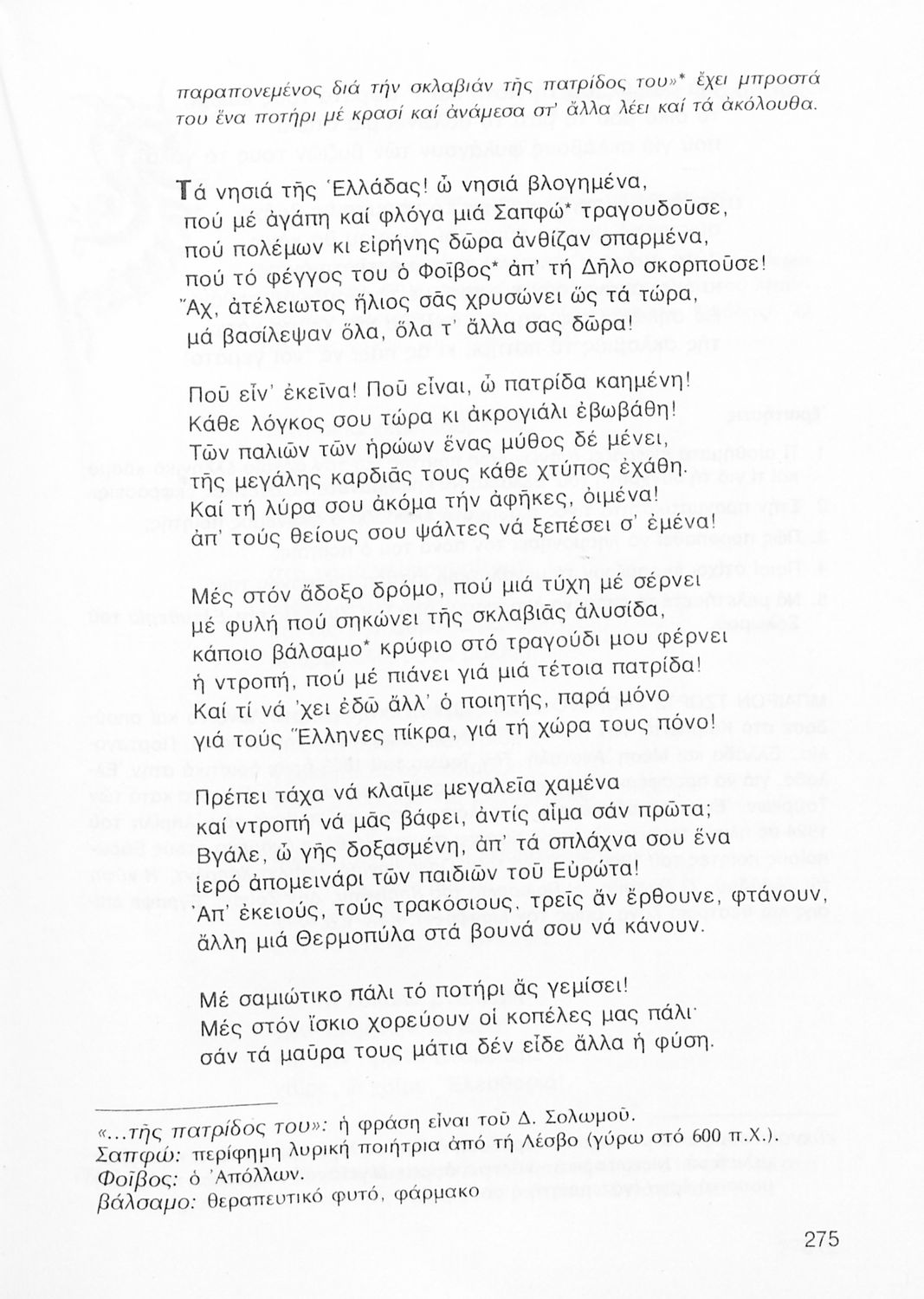 Σχολικό εγχειρίδιο Νέων Ελληνικών Β' Γυμνασίου που περιέχει δημοτικά τραγούδια, πεζά, δοκίμια και ποιήματα σύγχρονων Ελλήνων συγγραφέων και είναι χωρισμένο σε θεματικές ενότητες όπως η πόλη και η ύπαιθρος, η εποχή του 40' και η κατοχή, η θρησκευτική ζωή, ο καημός της ξενιτιάς, ο ελληνισμός έξω από τα σύνορα, οι αγώνες Ακριτών-Κλεφτών κ.α. Περιλαμβάνει και έργα ευρωπαίων λογοτεχνών.