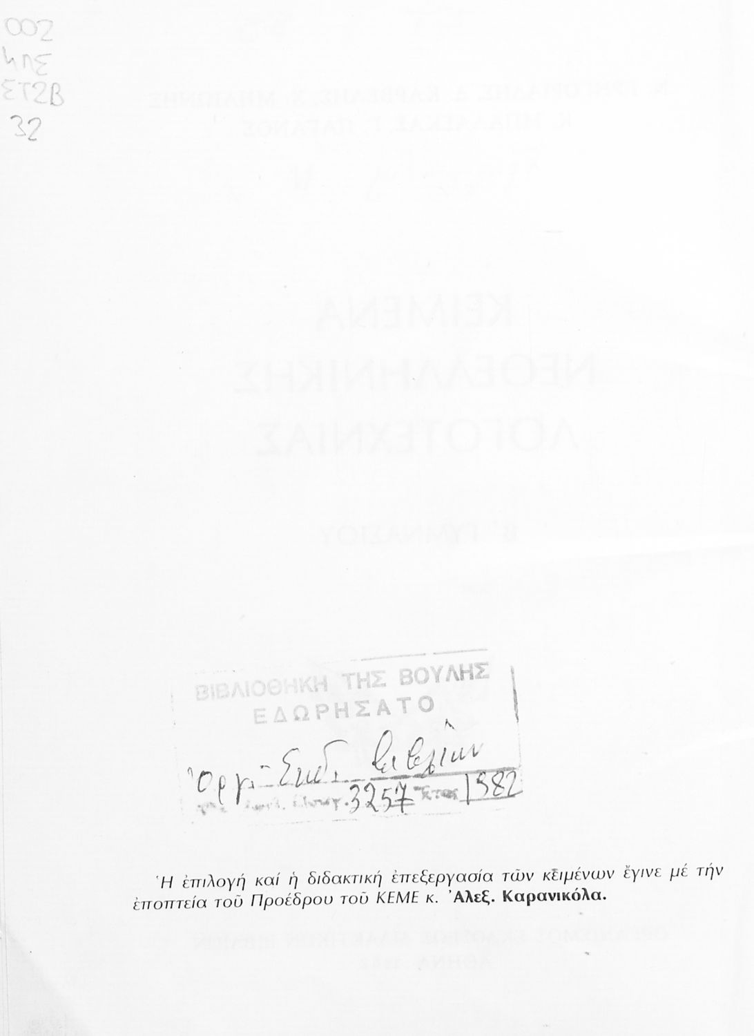 Εντοπισμός πρωτοτύπου: Βιβλιοθήκη της Βουλής των Ελλήνων Κωδικός βιβλιοθήκης: 20556132 |