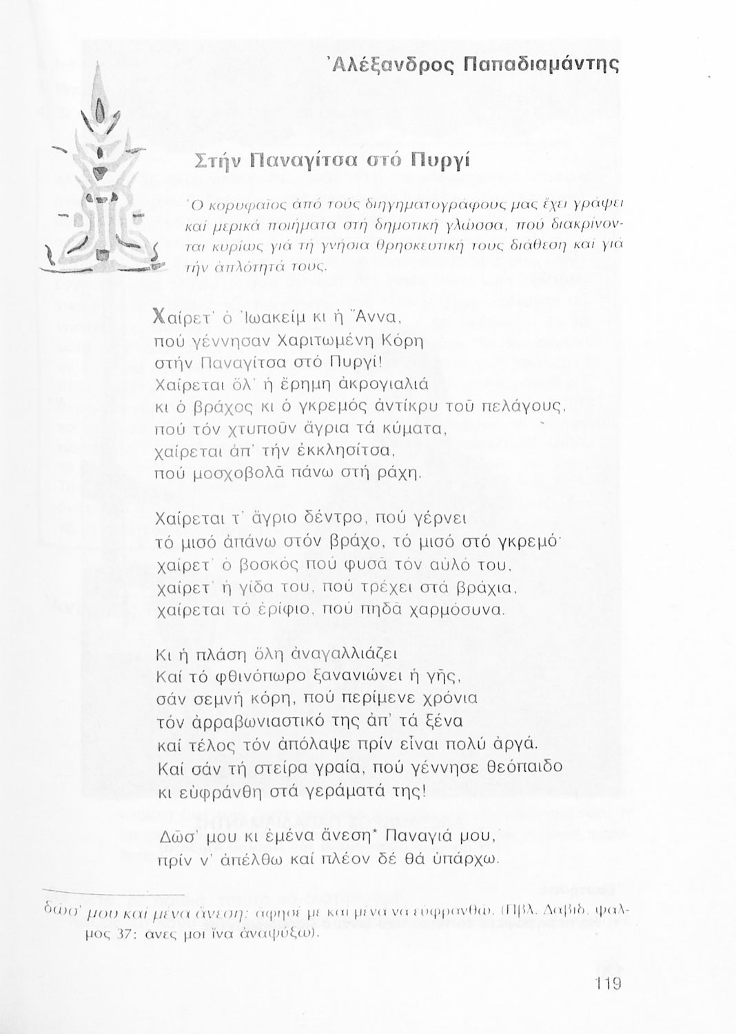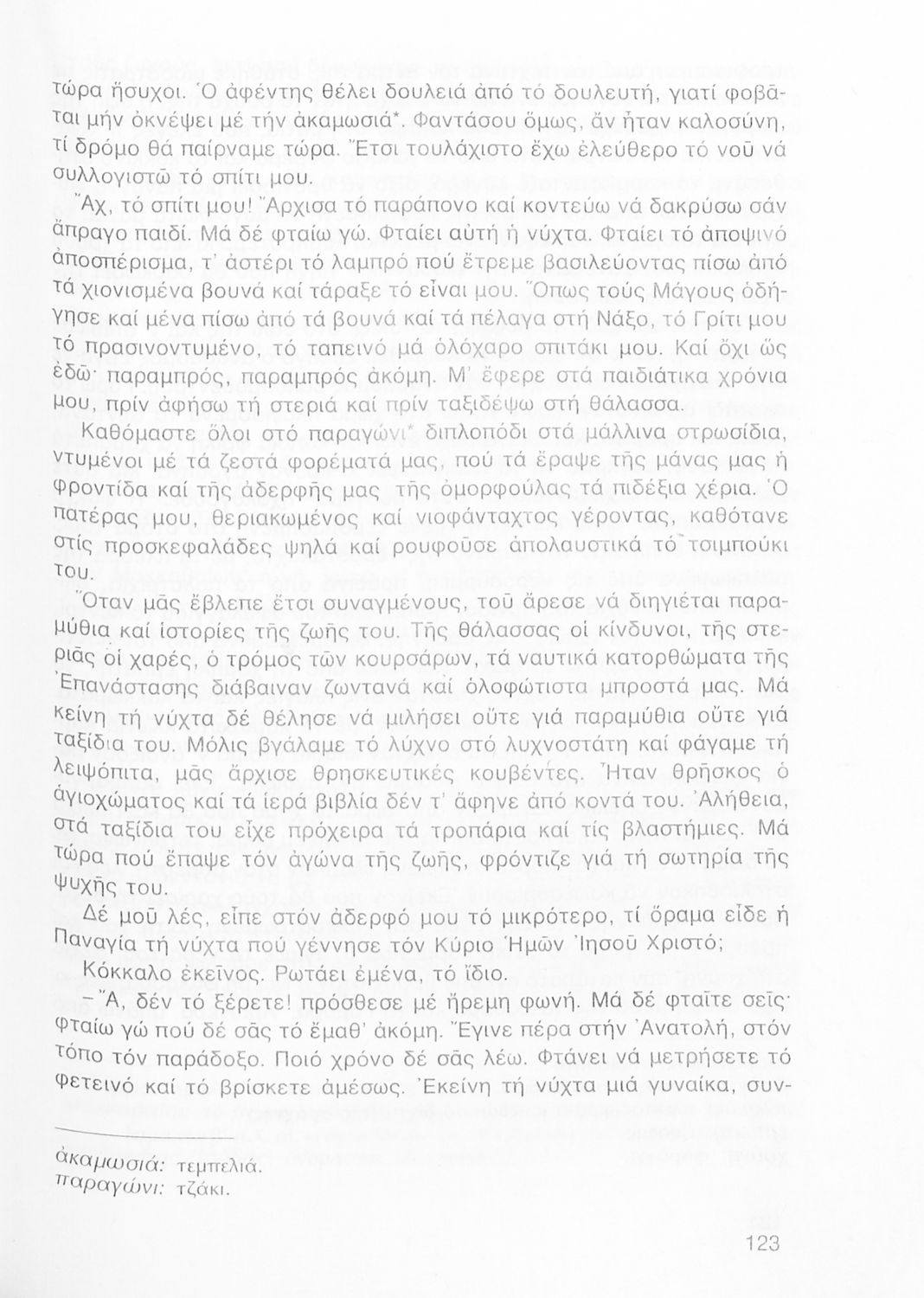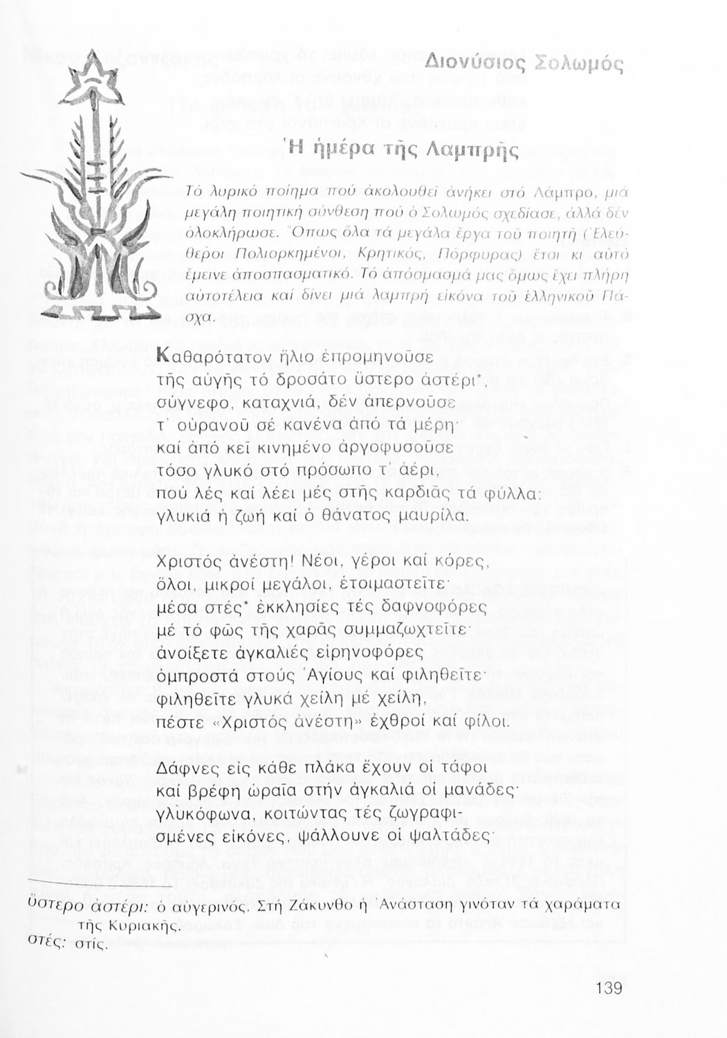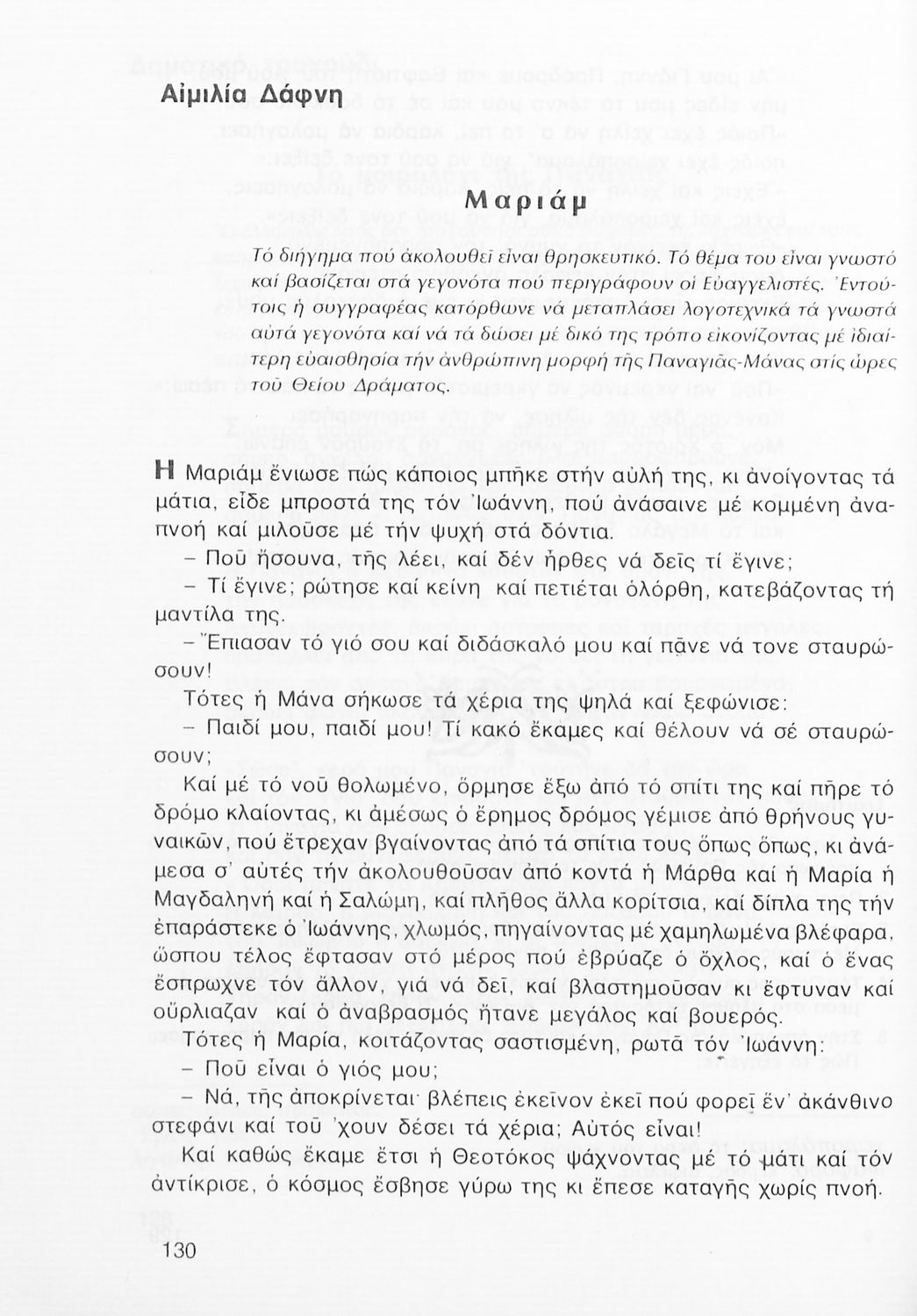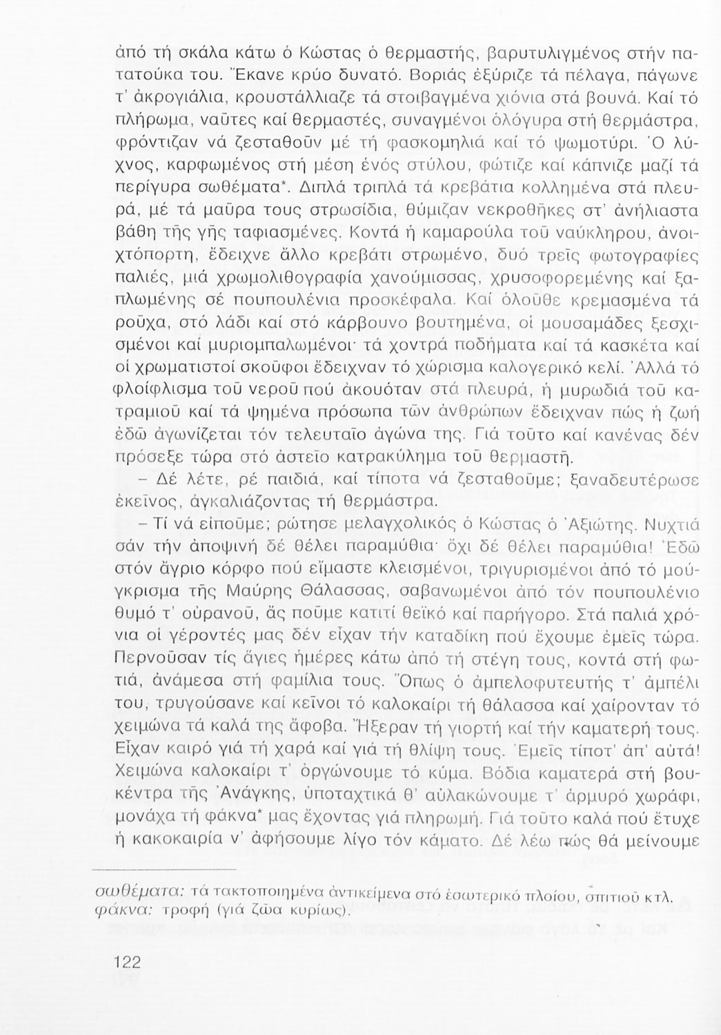 Σχολικό εγχειρίδιο Νέων Ελληνικών Β' Γυμνασίου που περιέχει δημοτικά τραγούδια, πεζά, δοκίμια και ποιήματα σύγχρονων Ελλήνων συγγραφέων και είναι χωρισμένο σε θεματικές ενότητες όπως η πόλη και η ύπαιθρος, η εποχή του 40' και η κατοχή, η θρησκευτική ζωή, ο καημός της ξενιτιάς, ο ελληνισμός έξω από τα σύνορα, οι αγώνες Ακριτών-Κλεφτών κ.α. Περιλαμβάνει και έργα ευρωπαίων λογοτεχνών.