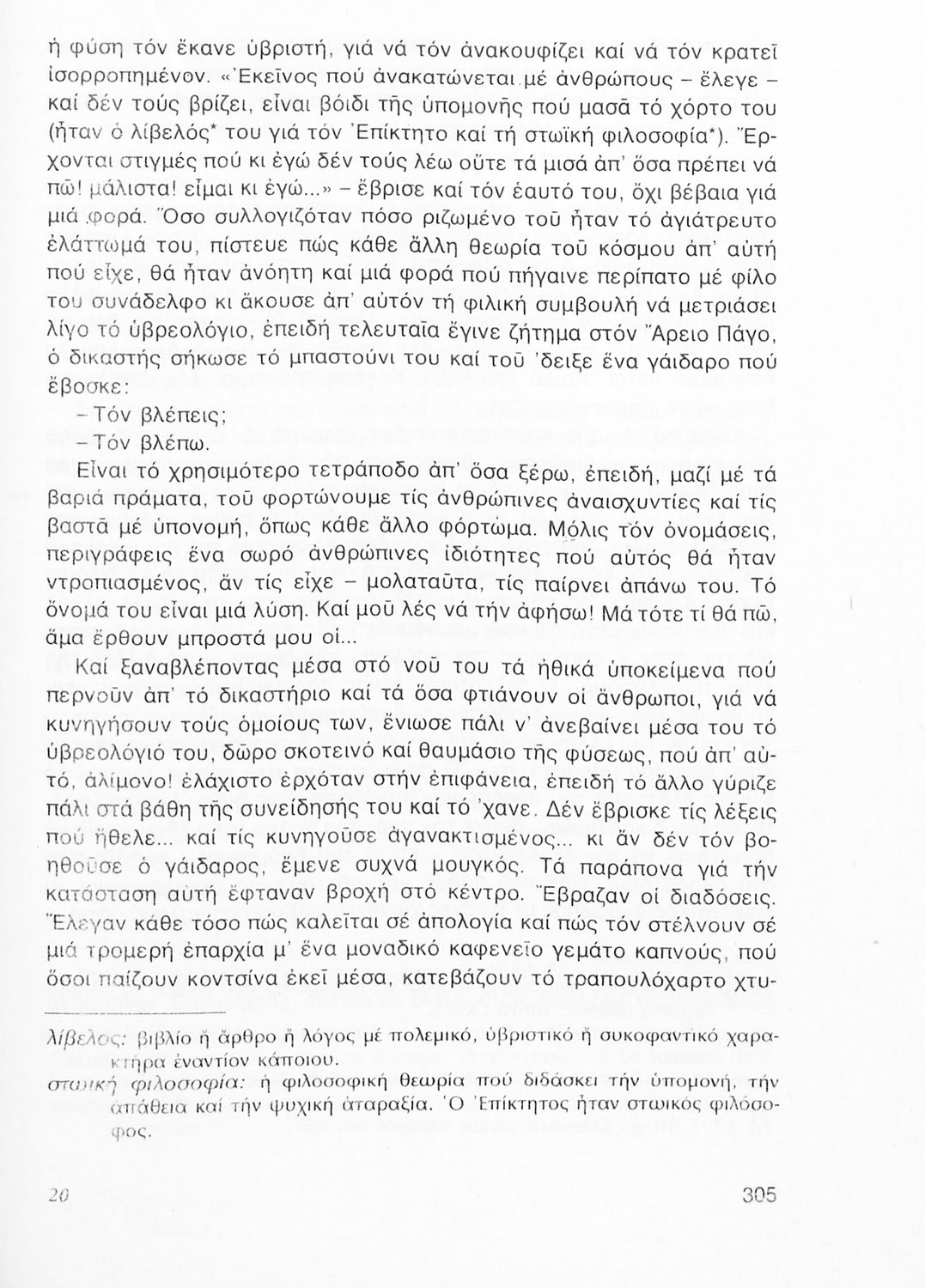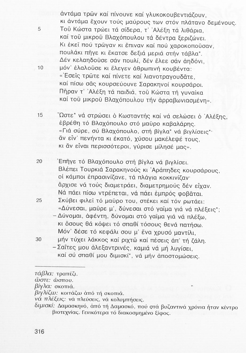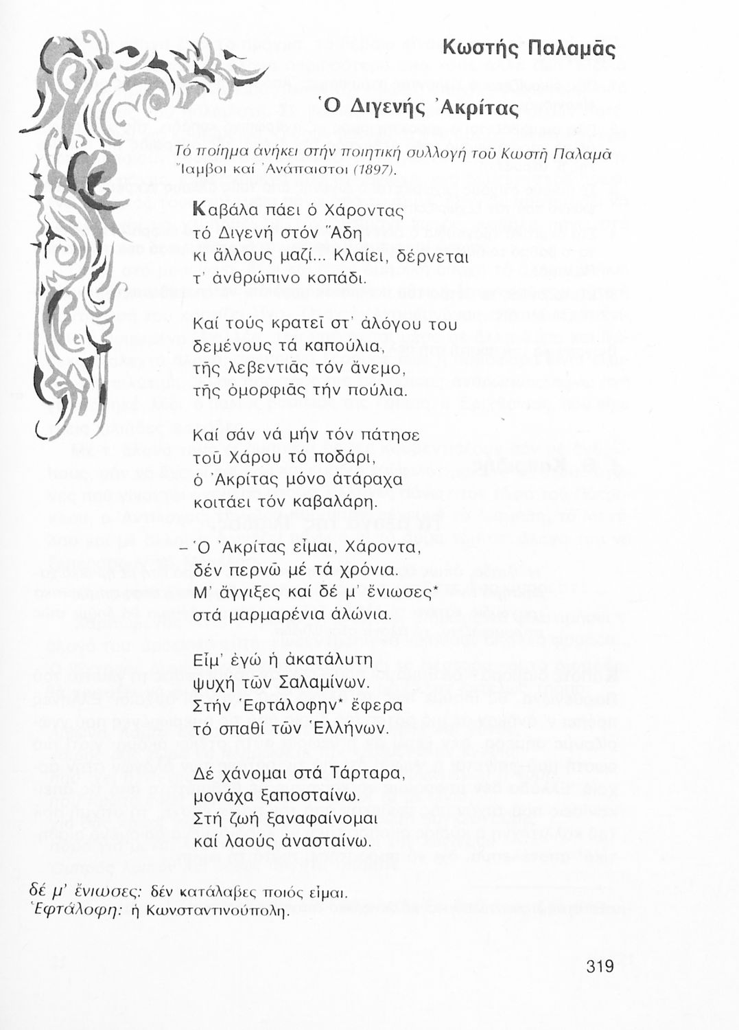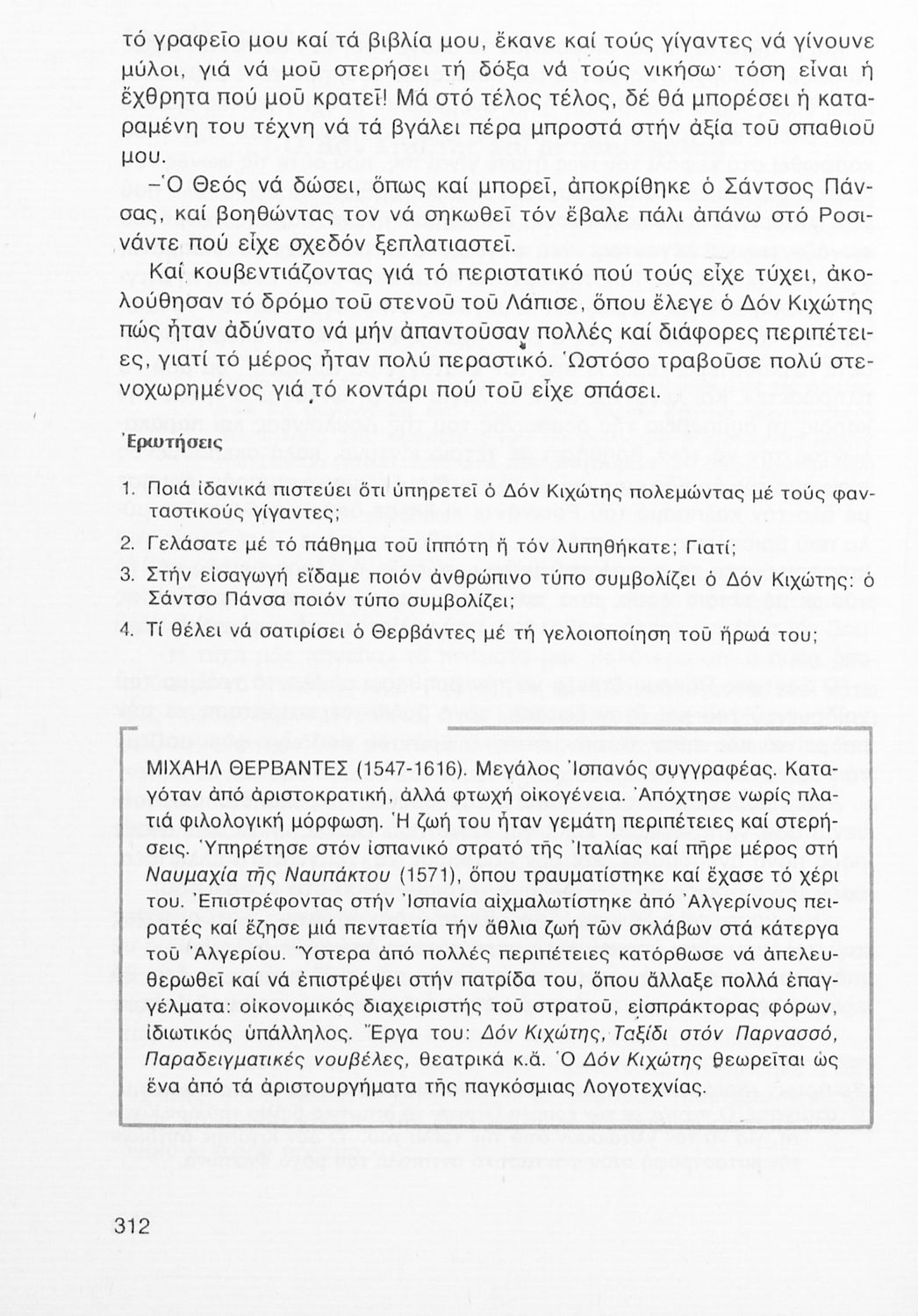 Σχολικό εγχειρίδιο Νέων Ελληνικών Β' Γυμνασίου που περιέχει δημοτικά τραγούδια, πεζά, δοκίμια και ποιήματα σύγχρονων Ελλήνων συγγραφέων και είναι χωρισμένο σε θεματικές ενότητες όπως η πόλη και η ύπαιθρος, η εποχή του 40' και η κατοχή, η θρησκευτική ζωή, ο καημός της ξενιτιάς, ο ελληνισμός έξω από τα σύνορα, οι αγώνες Ακριτών-Κλεφτών κ.α. Περιλαμβάνει και έργα ευρωπαίων λογοτεχνών.