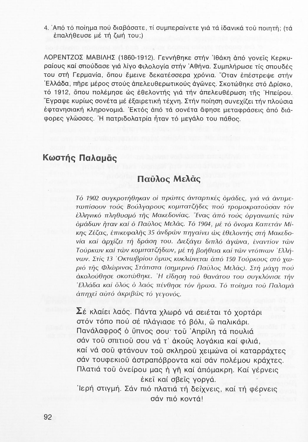 Κείμενα Νεοελληνικής Λογοτεχνίας Β΄ Γυμνασίου