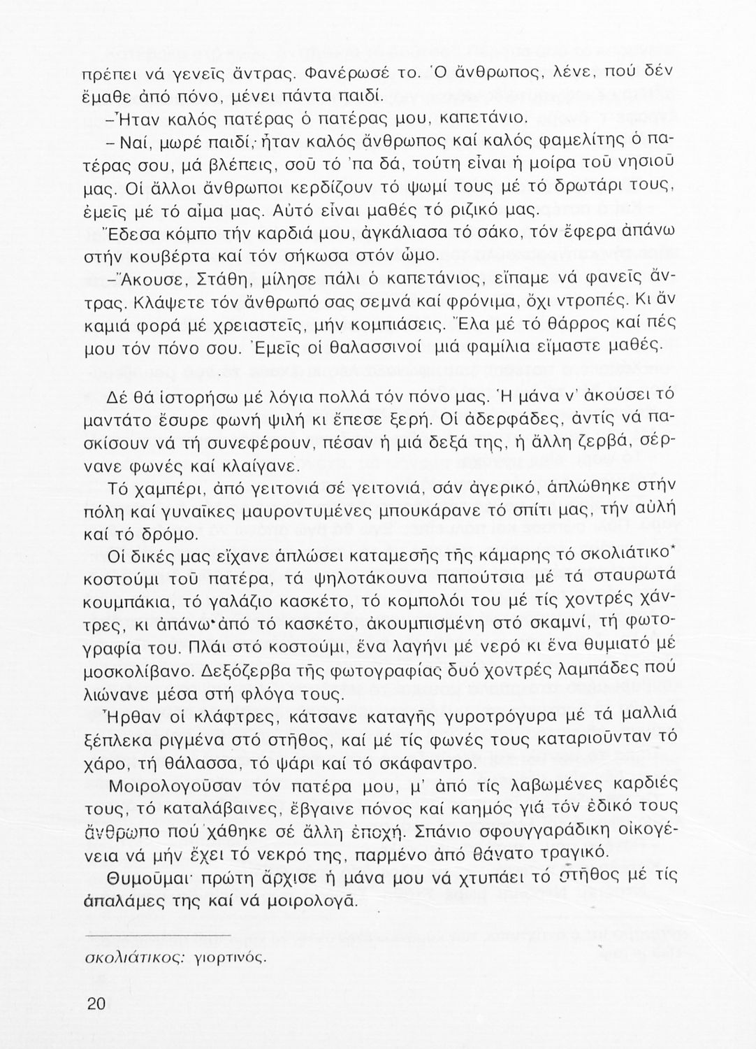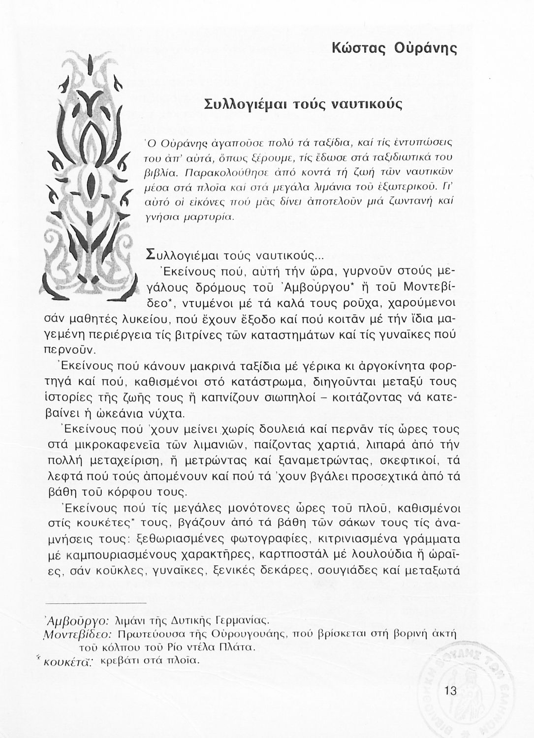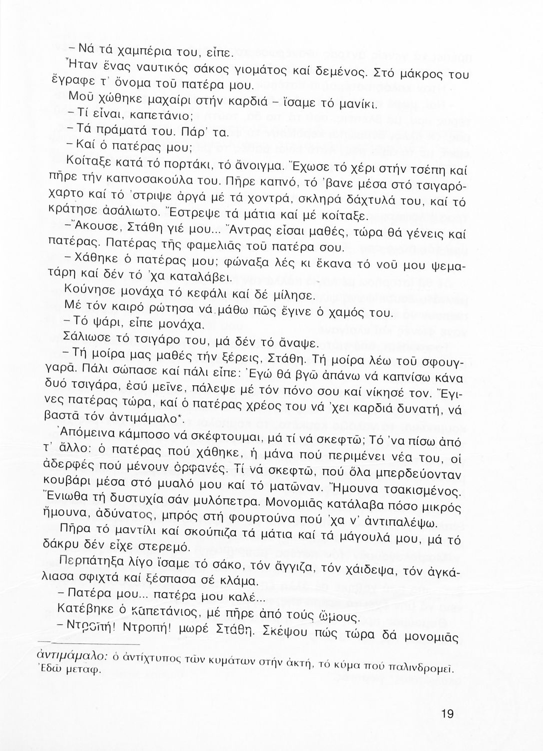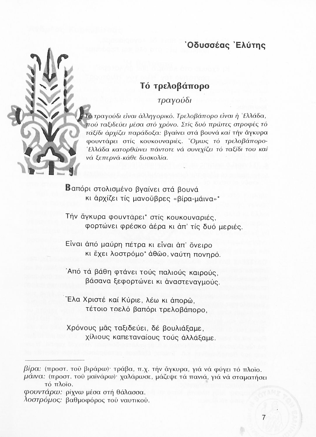 Σχολικό εγχειρίδιο Νέων Ελληνικών Β' Γυμνασίου που περιέχει δημοτικά τραγούδια, πεζά, δοκίμια και ποιήματα σύγχρονων Ελλήνων συγγραφέων και είναι χωρισμένο σε θεματικές ενότητες όπως η πόλη και η ύπαιθρος, η εποχή του 40' και η κατοχή, η θρησκευτική ζωή, ο καημός της ξενιτιάς, ο ελληνισμός έξω από τα σύνορα, οι αγώνες Ακριτών-Κλεφτών κ.α. Περιλαμβάνει και έργα ευρωπαίων λογοτεχνών.
