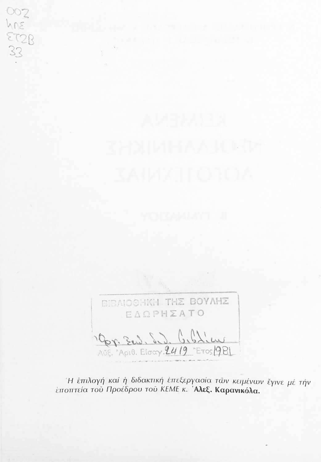 Εντοπισμός πρωτοτύπου: Βιβλιοθήκη της Βουλής των Ελλήνων Κωδικός βιβλιοθήκης: 20556133 |