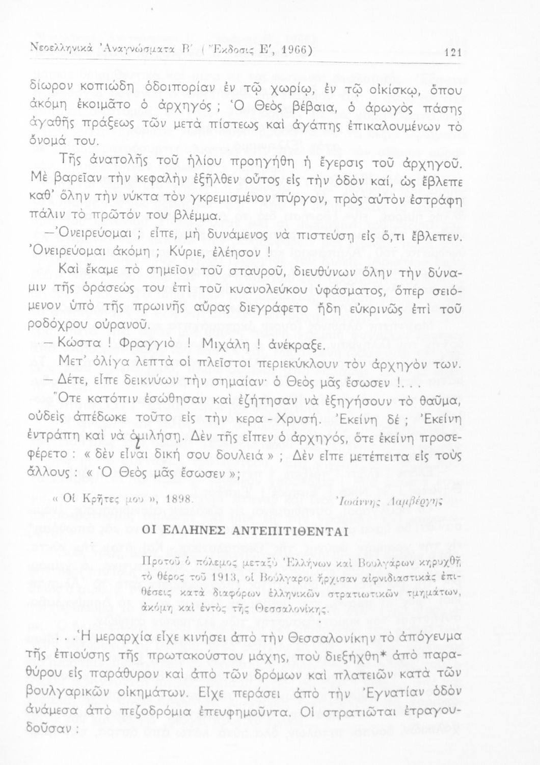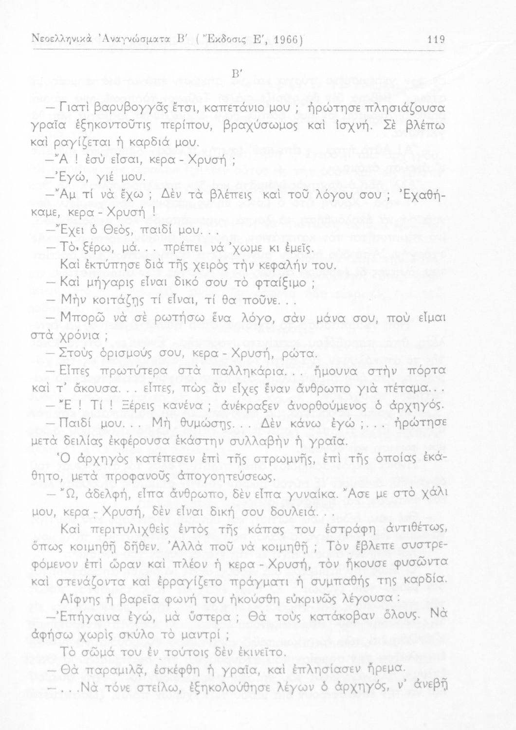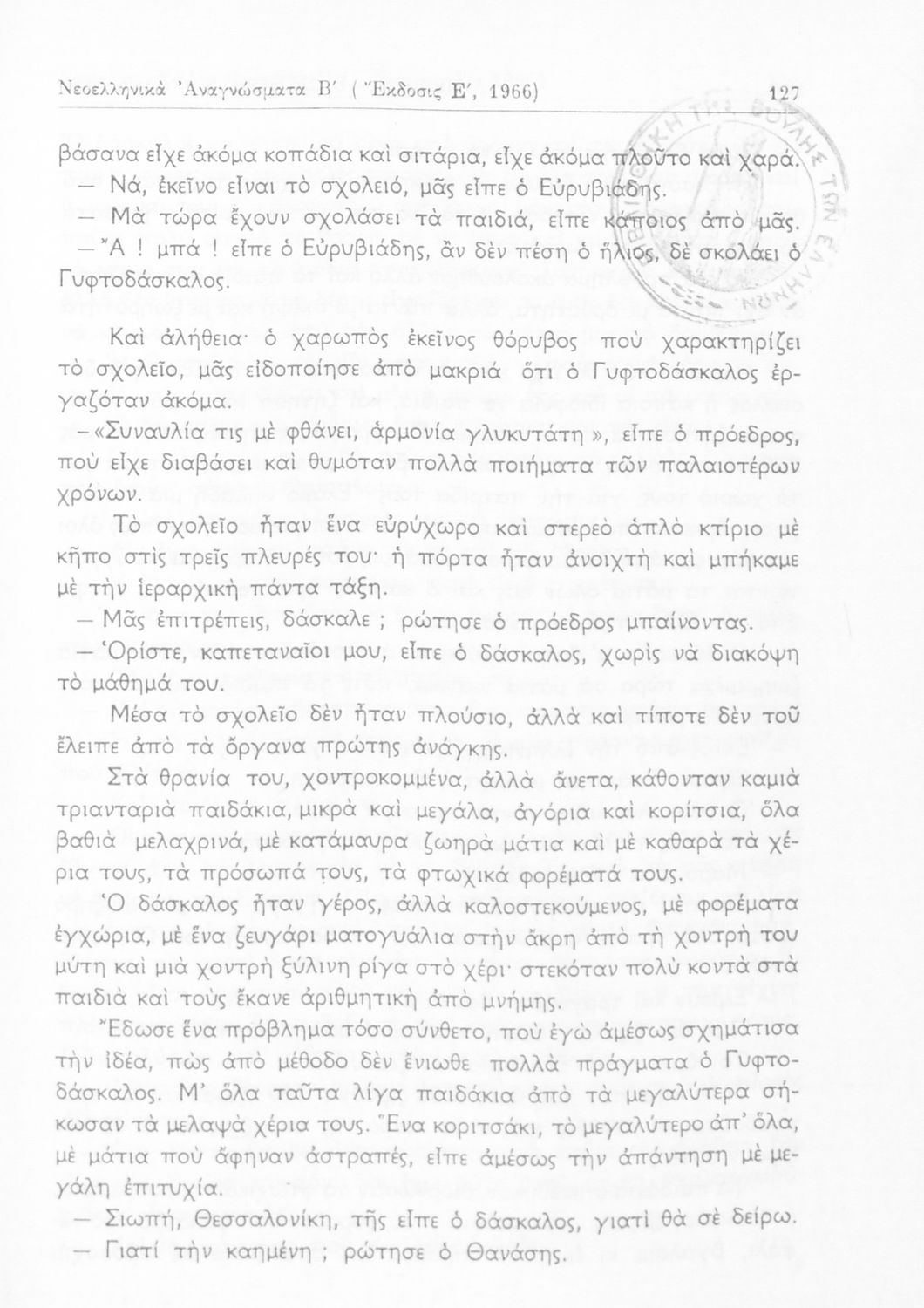 Σχολικό εγχειρίδιο Νέων Ελληνικών Δ΄ Γυμνασίου και Β΄ Αστικού Σχολείου που περιέχει πεζά και ποιήματα Ελλήνων συγγραφέων εμπνευσμένα από τη θρησκευτική και κοινωνική ζωή, την ελληνική μυθολογία, την αρχαία και