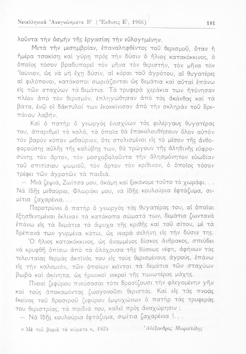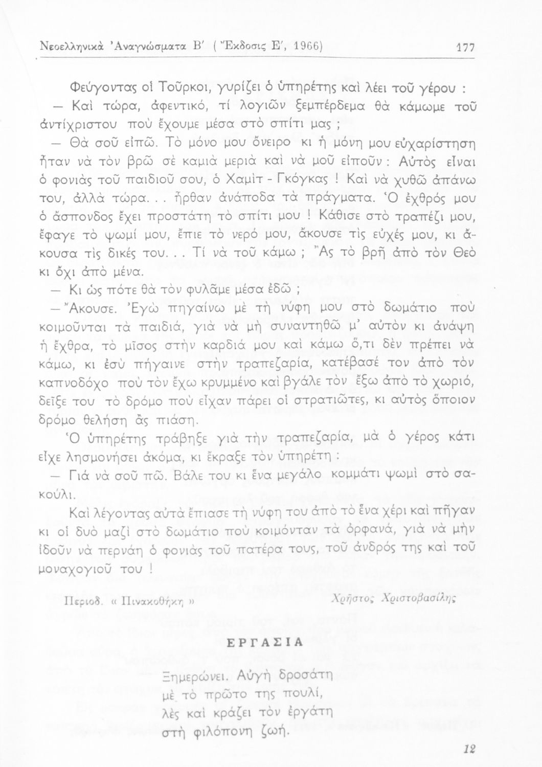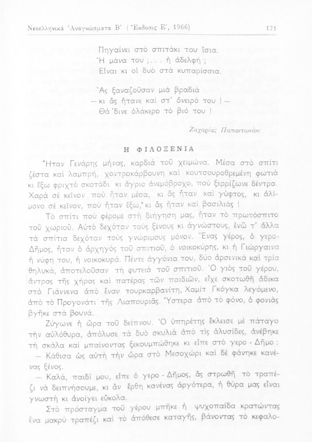 Σχολικό εγχειρίδιο Νέων Ελληνικών Δ΄ Γυμνασίου και Β΄ Αστικού Σχολείου που περιέχει πεζά και ποιήματα Ελλήνων συγγραφέων εμπνευσμένα από τη θρησκευτική και κοινωνική ζωή, την ελληνική μυθολογία, την αρχαία και