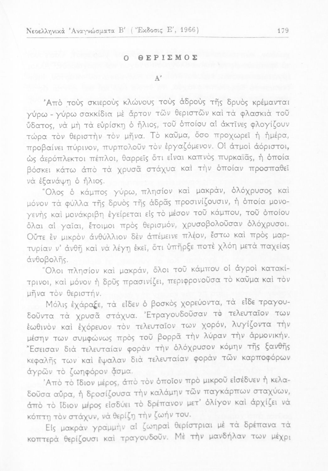 Σχολικό εγχειρίδιο Νέων Ελληνικών Β' Γυμνασίου που περιέχει ποιήματα και πεζά Ελλήνων συγγραφέων εμπνευσμένα από τη θρησκευτική, εθνική, οικογενειακή και κοινωνική ζωή και την ελληνική φύση. Περιέχει παράρτημα