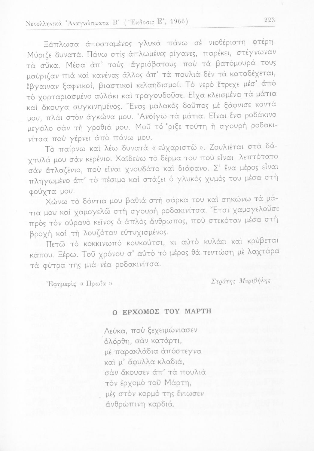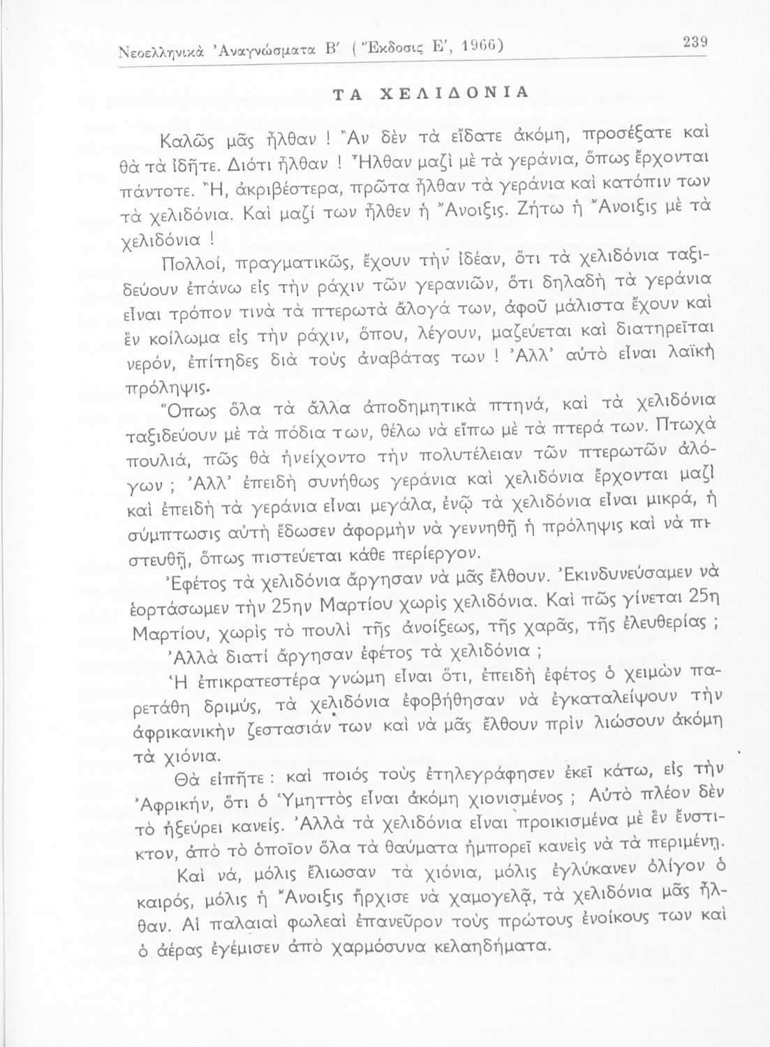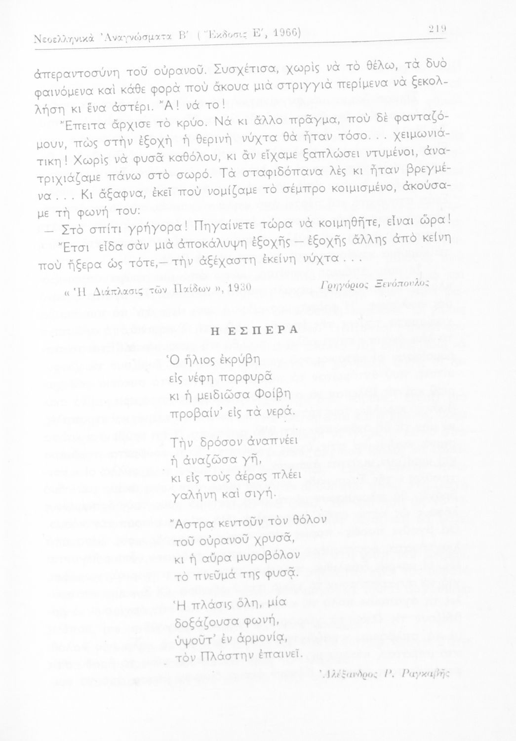 Σχολικό εγχειρίδιο Νέων Ελληνικών Β' Γυμνασίου που περιέχει ποιήματα και πεζά Ελλήνων συγγραφέων εμπνευσμένα από τη θρησκευτική, εθνική, οικογενειακή και κοινωνική ζωή και την ελληνική φύση. Περιέχει παράρτημα