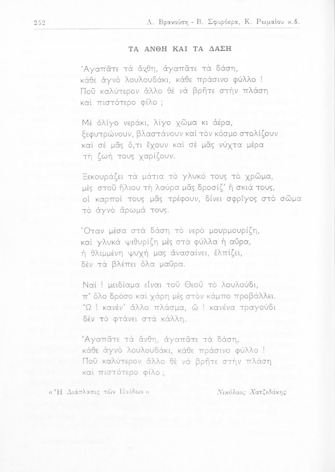 Σχολικό εγχειρίδιο Νέων Ελληνικών Β' Γυμνασίου που περιέχει ποιήματα και πεζά Ελλήνων συγγραφέων εμπνευσμένα από τη θρησκευτική, εθνική, οικογενειακή και κοινωνική ζωή και την ελληνική φύση. Περιέχει παράρτημα