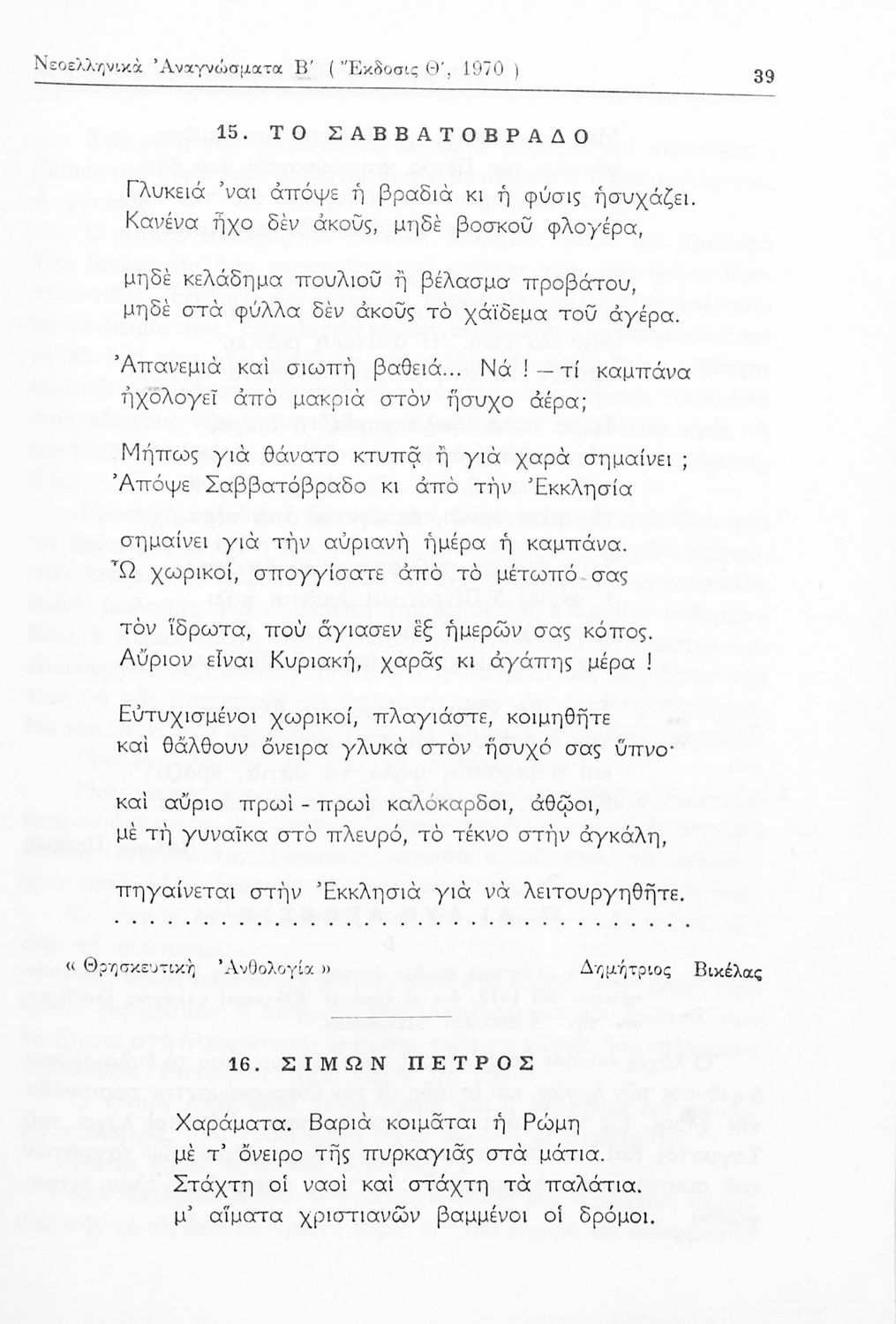 Σχολικό εγχειρίδιο Νέων Ελληνικών Δ΄ Γυμνασίου και Β΄ Αστικού Σχολείου που περιέχει πεζά και ποιήματα Ελλήνων συγγραφέων εμπνευσμένα από τη θρησκευτική και κοινωνική ζωή, την ελληνική μυθολογία, την αρχαία και