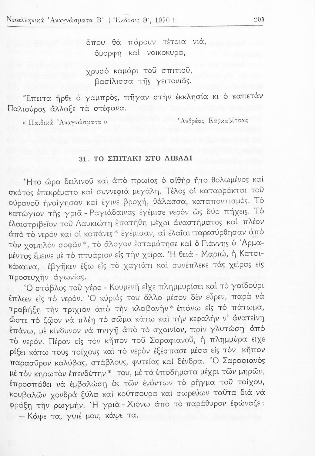 Σχολικό εγχειρίδιο Νέων Ελληνικών Δ΄ Γυμνασίου και Β΄ Αστικού Σχολείου που περιέχει πεζά και ποιήματα Ελλήνων συγγραφέων εμπνευσμένα από τη θρησκευτική και κοινωνική ζωή, την ελληνική μυθολογία, την αρχαία και
