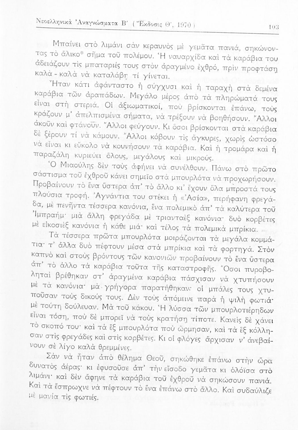 Σχολικό εγχειρίδιο Νέων Ελληνικών Β' Γυμνασίου που περιέχει ποιήματα και πεζά Ελλήνων συγγραφέων εμπνευσμένα από τη θρησκευτική, εθνική, οικογενειακή και κοινωνική ζωή και την ελληνική φύση. Περιέχει παράρτημα με βιογραφίες των συγγραφέων και λεξιλόγιο. Φέρει το σύμβολο της δικτατορίας.