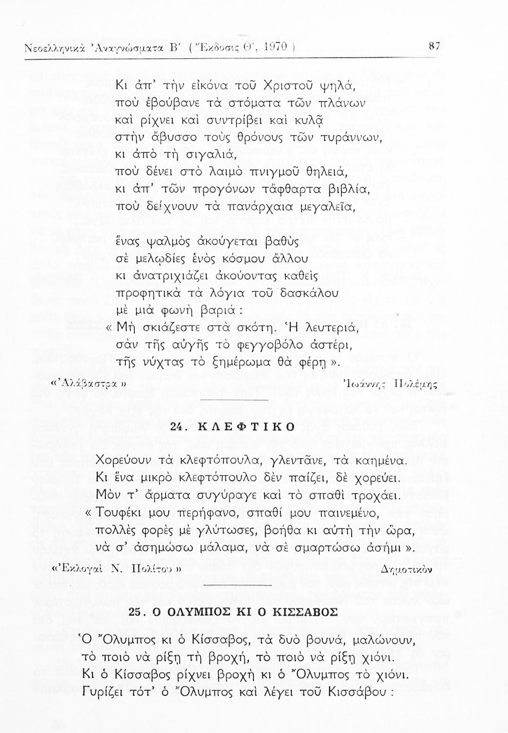 Σχολικό εγχειρίδιο Νέων Ελληνικών Δ΄ Γυμνασίου και Β΄ Αστικού Σχολείου που περιέχει πεζά και ποιήματα Ελλήνων συγγραφέων εμπνευσμένα από τη θρησκευτική και κοινωνική ζωή, την ελληνική μυθολογία, την αρχαία και