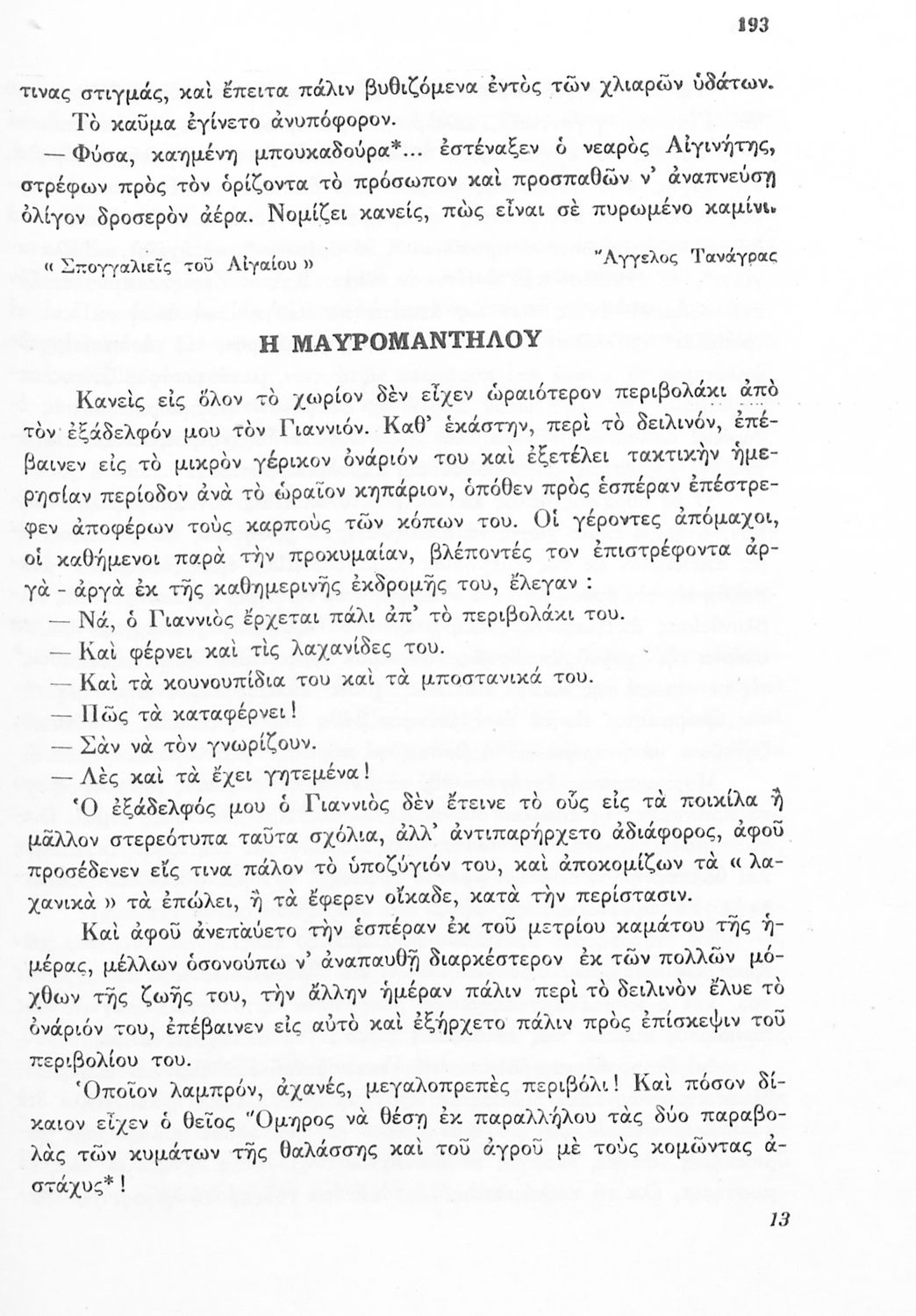 Σχολικό εγχειρίδιο Νέων Ελληνικών Γ΄ Γυμνασίου και Α' Αστικού Σχολείου που περιέχει πεζά και ποιήματα Ελλήνων συγγραφέων εμπνευσμένα από τη θρησκευτική και κοινωνική ζωή, την ελληνική μυθολογία, την αρχαία και