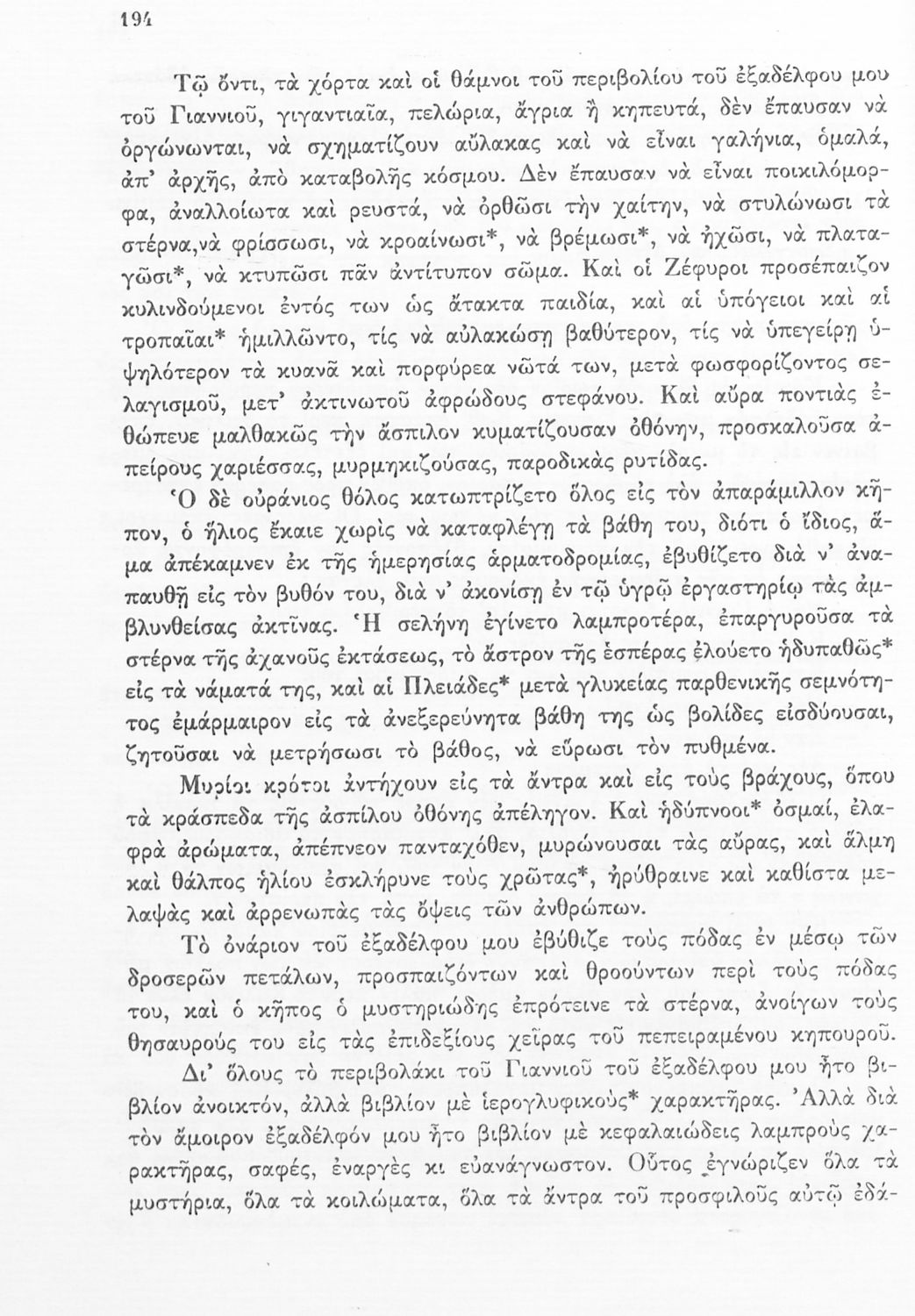 Σχολικό εγχειρίδιο Νέων Ελληνικών Γ' Γυμνασίου που περιλαμβάνει πεζά και ποιήματα Ελλήνων συγγραφέων εμπνευσμένα από την οικογενειακή και θρησκευτική ζωή, την σύγχρονη ελληνική ιστορία και τη φύση. Περιέχει παράρτημα με βιογραφίες των συγγραφέων και λεξιλόγιο. Φέρει το σύμβολο της δικτατορίας.