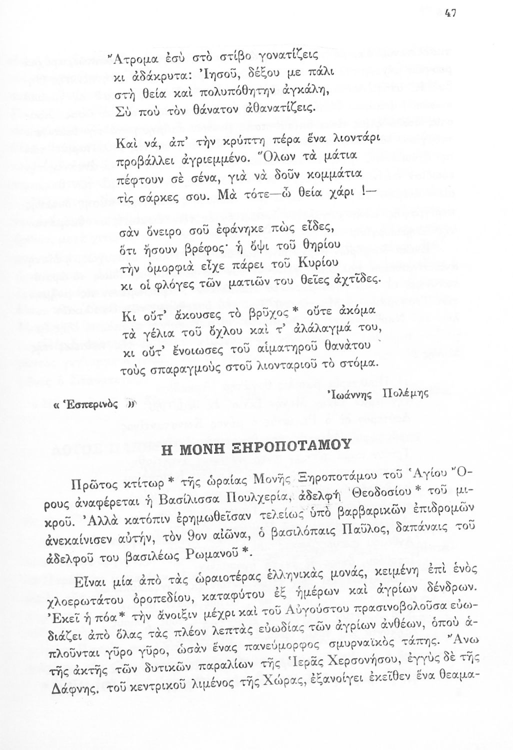 Σχολικό εγχειρίδιο Νέων Ελληνικών Γ΄ Γυμνασίου και Α' Αστικού Σχολείου που περιέχει πεζά και ποιήματα Ελλήνων συγγραφέων εμπνευσμένα από τη θρησκευτική και κοινωνική ζωή, την ελληνική μυθολογία, την αρχαία και