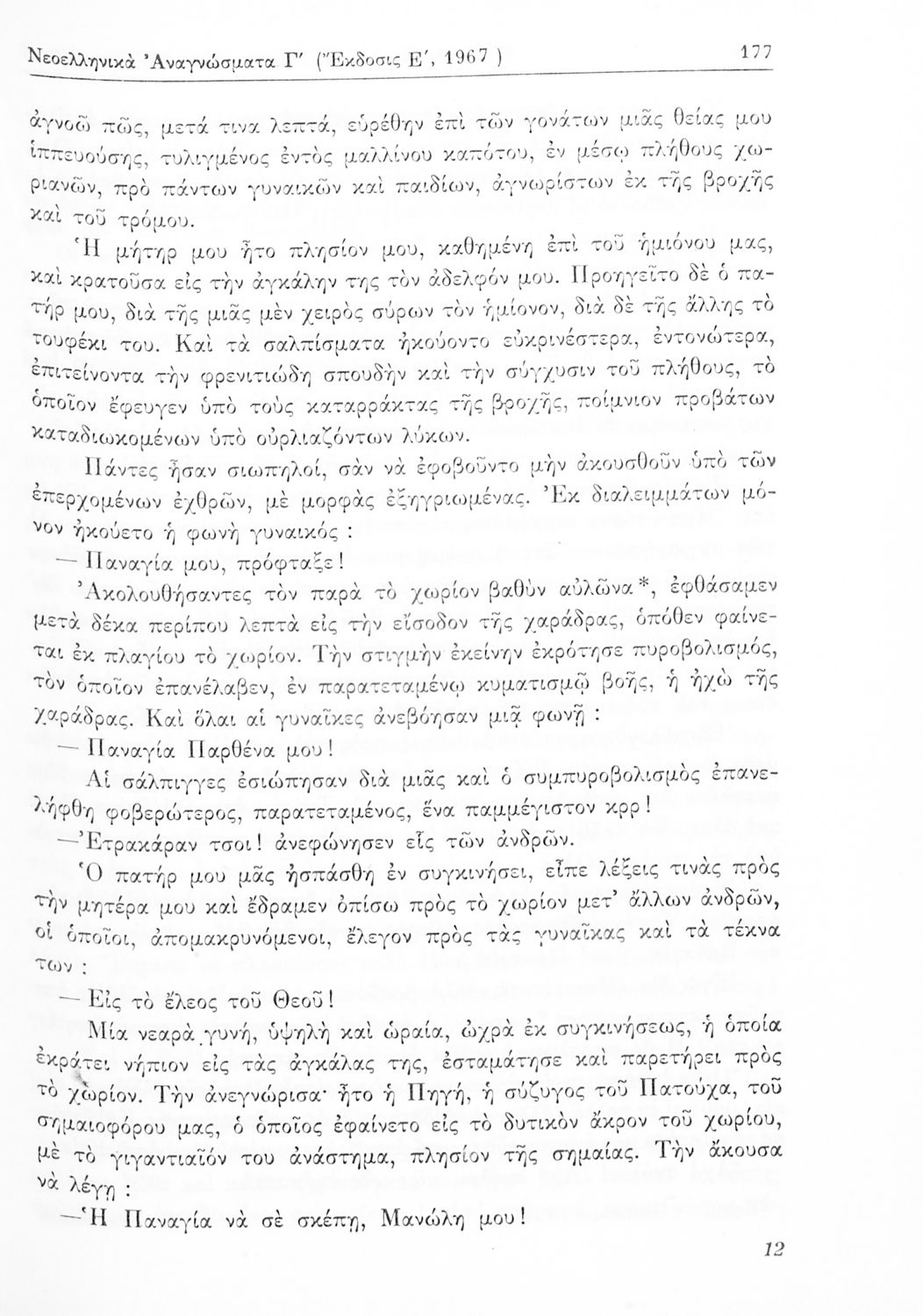 Σχολικό εγχειρίδιο Νέων Ελληνικών Γ΄ Γυμνασίου και Α' Αστικού Σχολείου που περιέχει πεζά και ποιήματα Ελλήνων συγγραφέων εμπνευσμένα από τη θρησκευτική και κοινωνική ζωή, την ελληνική μυθολογία, την αρχαία και
