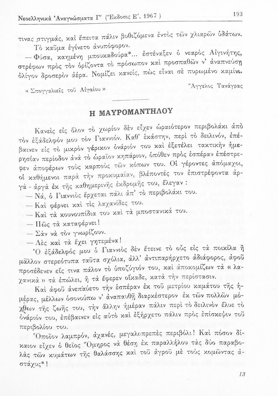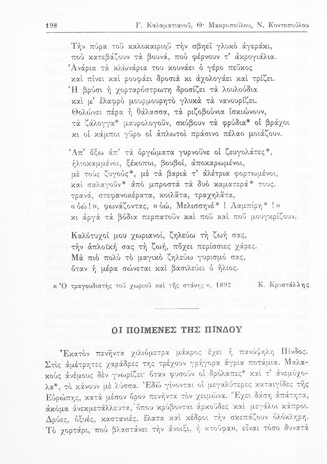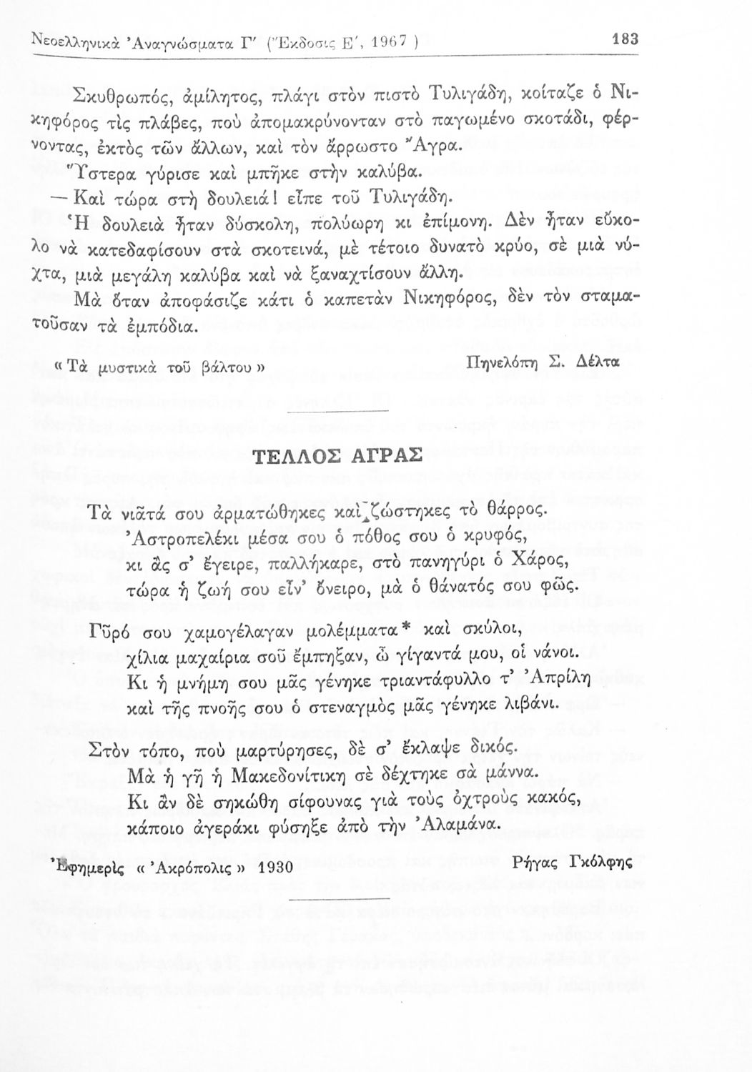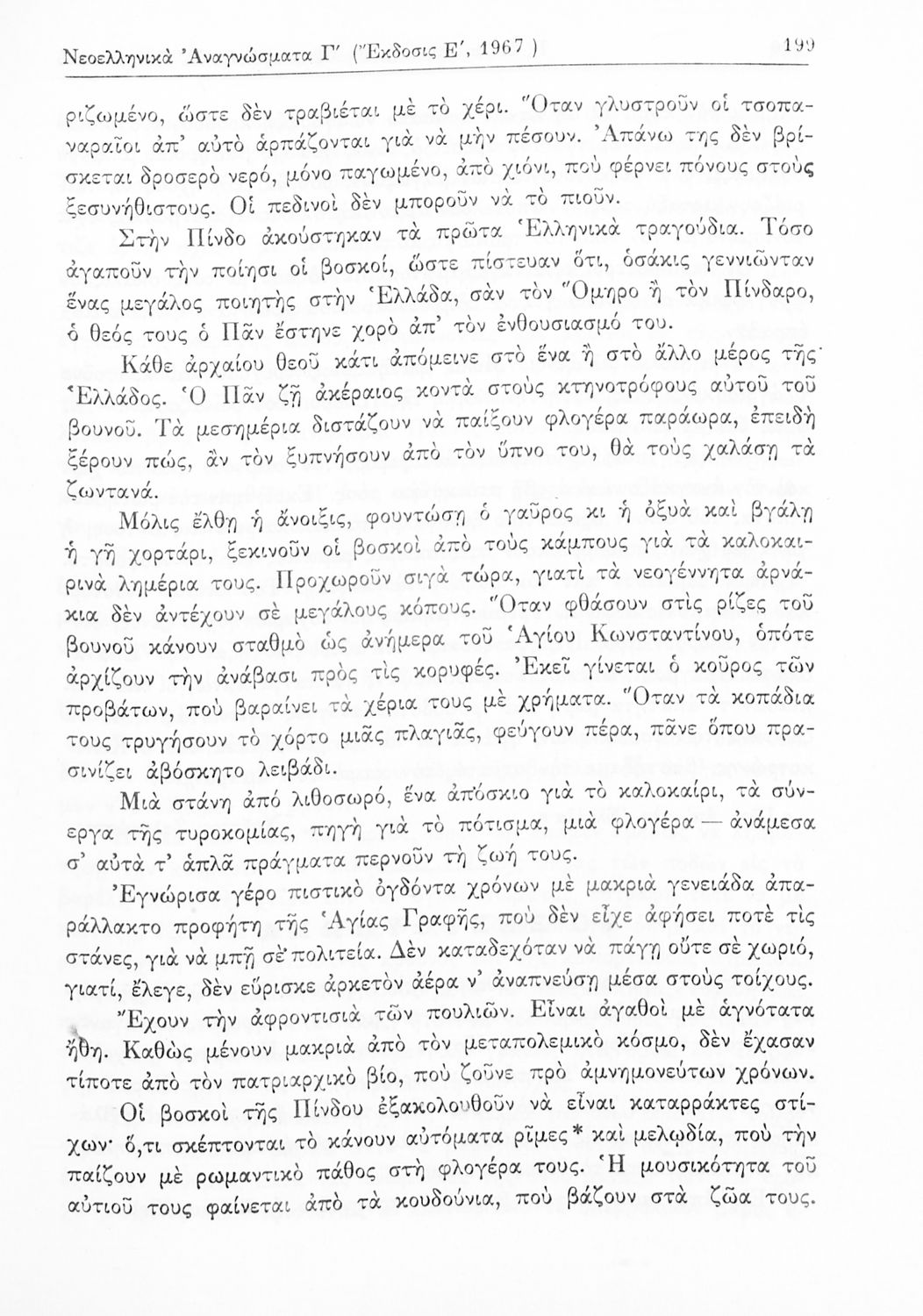 Σχολικό εγχειρίδιο Νέων Ελληνικών Γ' Γυμνασίου που περιέχει ποιήματα και πεζά Ελλήνων συγγραφέων εμπνευσμένα από τη θρησκευτική, οικογενειακή και κοινωνική ζωή, την σύγχρονή ελληνική ιστορία και την ελληνική φύση. Περιέχει παράρτημα με βιογραφίες των συγγραφέων και λεξιλόγιο.