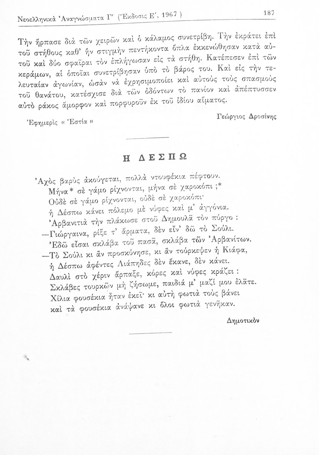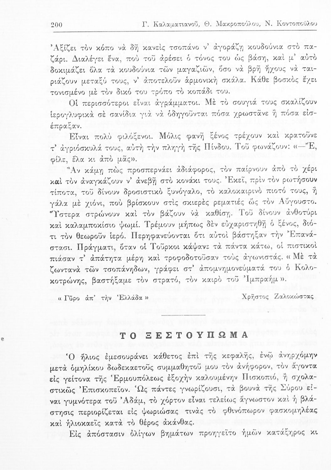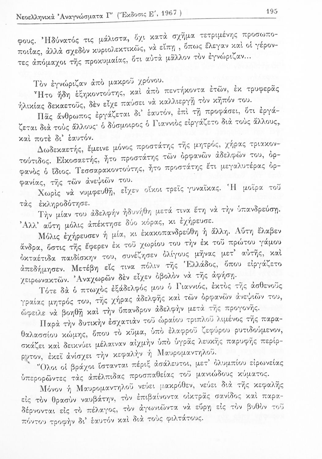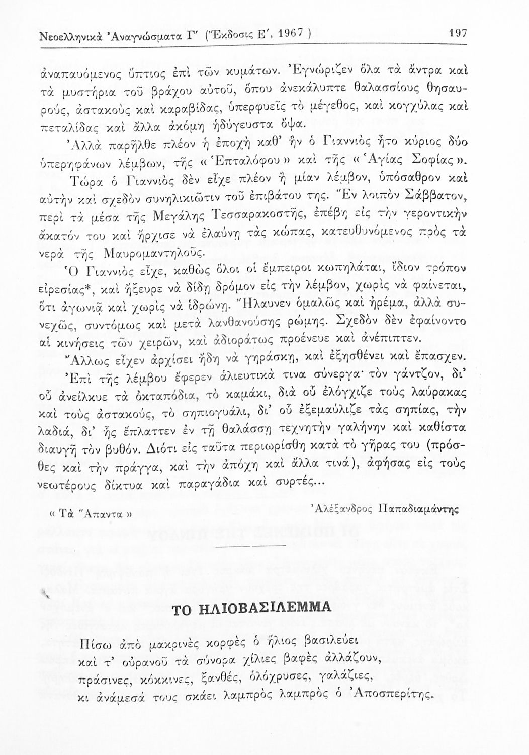 Σχολικό εγχειρίδιο Νέων Ελληνικών Γ' Γυμνασίου που περιέχει ποιήματα και πεζά Ελλήνων συγγραφέων εμπνευσμένα από τη θρησκευτική, οικογενειακή και κοινωνική ζωή, την σύγχρονή ελληνική ιστορία και την ελληνική φύση. Περιέχει παράρτημα με βιογραφίες των συγγραφέων και λεξιλόγιο.