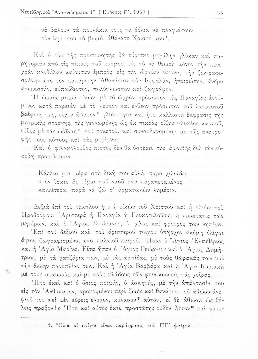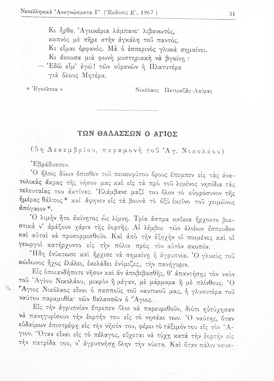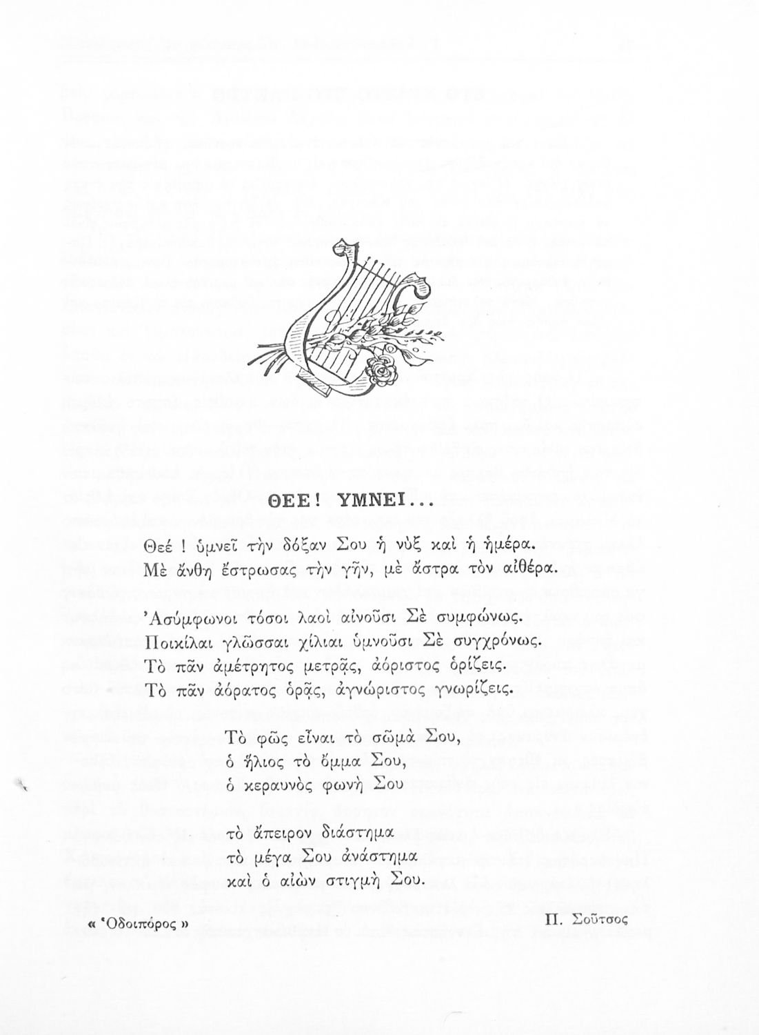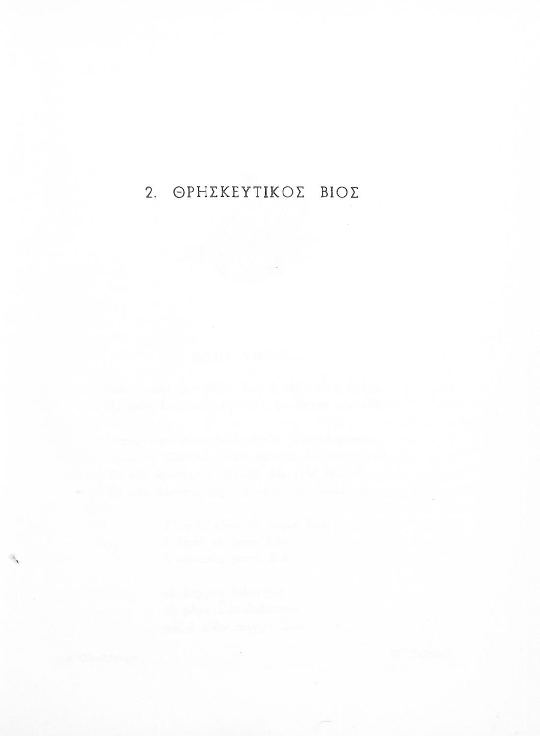 Σχολικό εγχειρίδιο Νέων Ελληνικών Γ΄ Γυμνασίου και Α' Αστικού Σχολείου που περιέχει πεζά και ποιήματα Ελλήνων συγγραφέων εμπνευσμένα από τη θρησκευτική και κοινωνική ζωή, την ελληνική μυθολογία, την αρχαία και