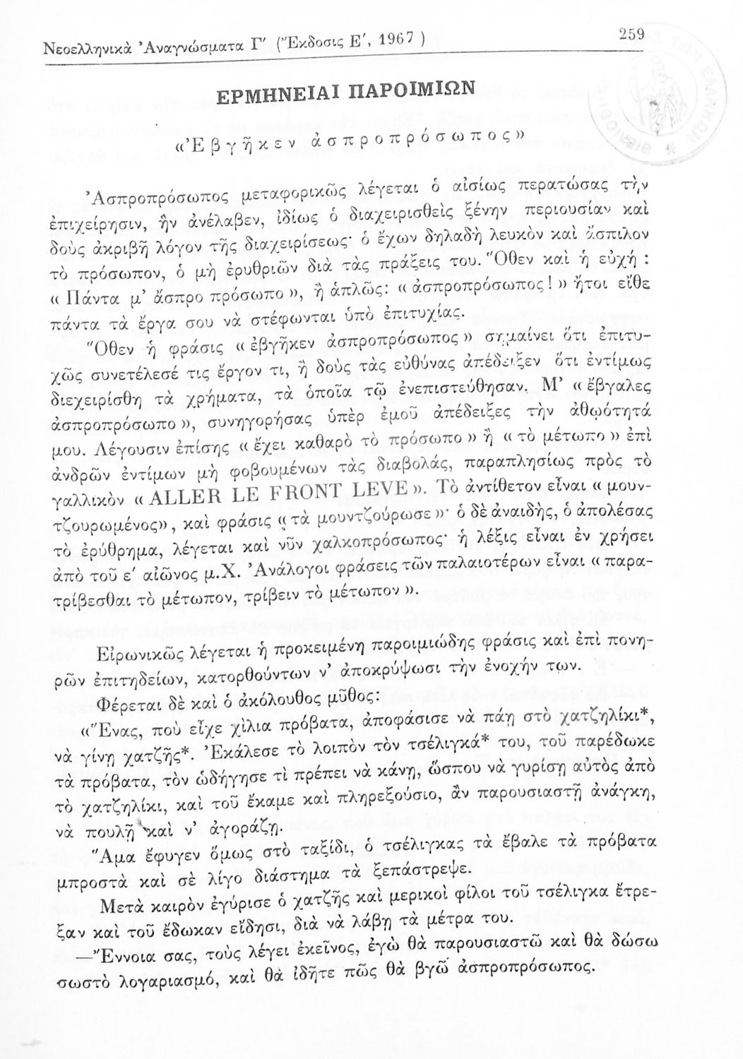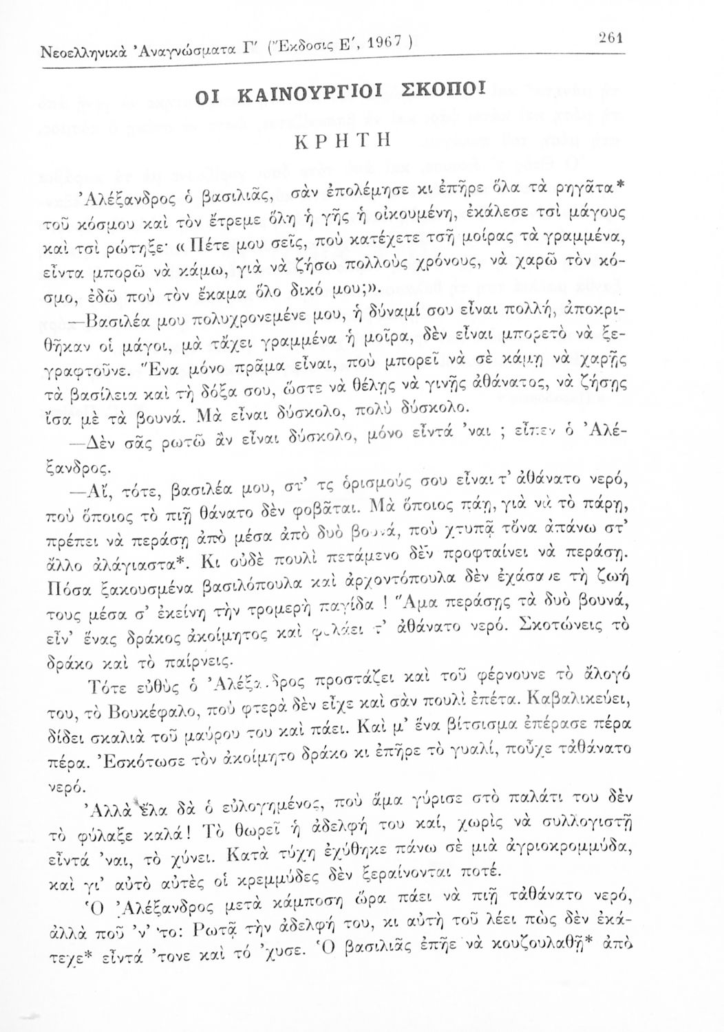 Σχολικό εγχειρίδιο Νέων Ελληνικών Γ΄ Γυμνασίου και Α' Αστικού Σχολείου που περιέχει πεζά και ποιήματα Ελλήνων συγγραφέων εμπνευσμένα από τη θρησκευτική και κοινωνική ζωή, την ελληνική μυθολογία, την αρχαία και